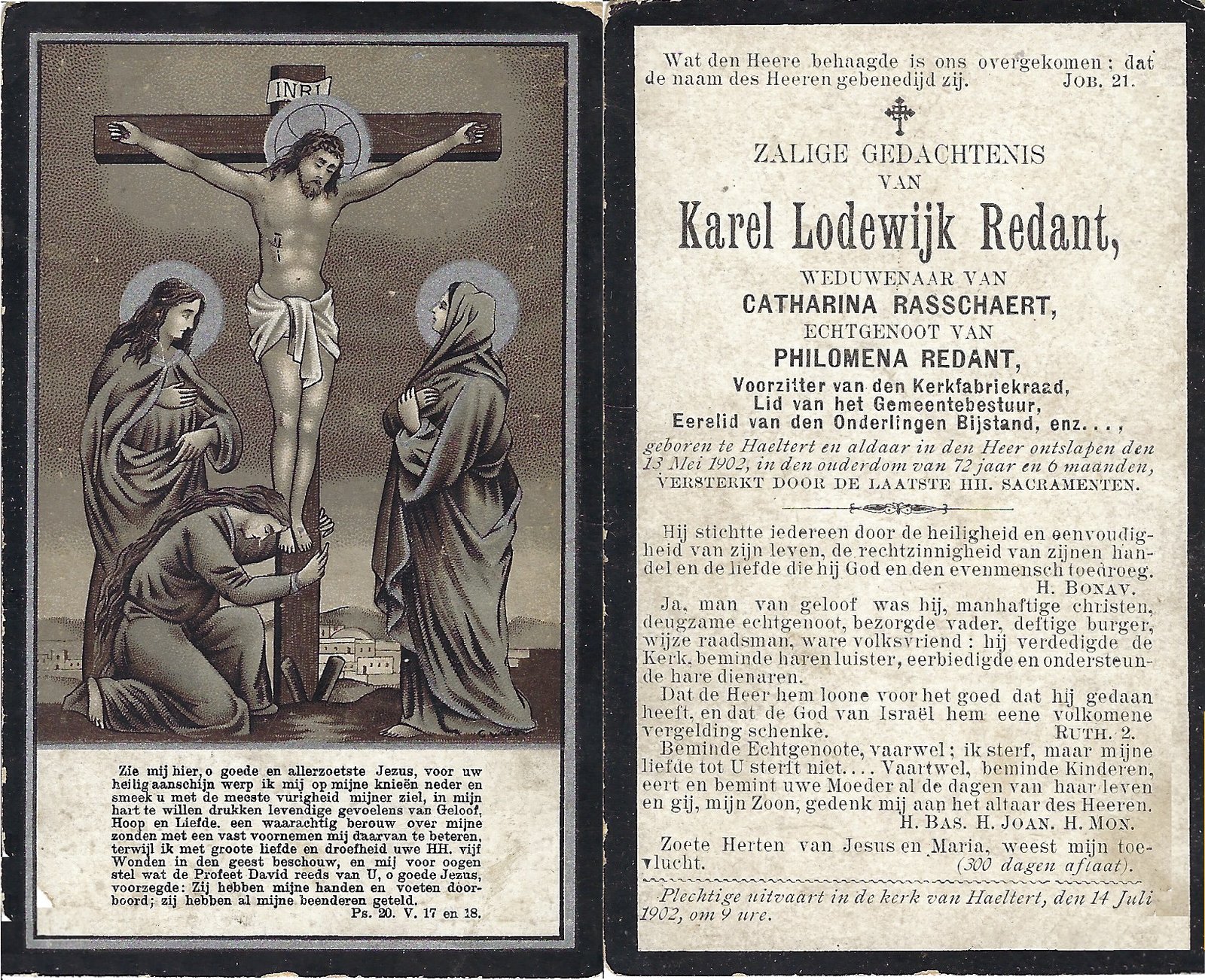 | Redant Karel, Gemeenteraadslid Haaltert | Haaltert | 17/09/1829 | Haaltert | 13/05/1902 |