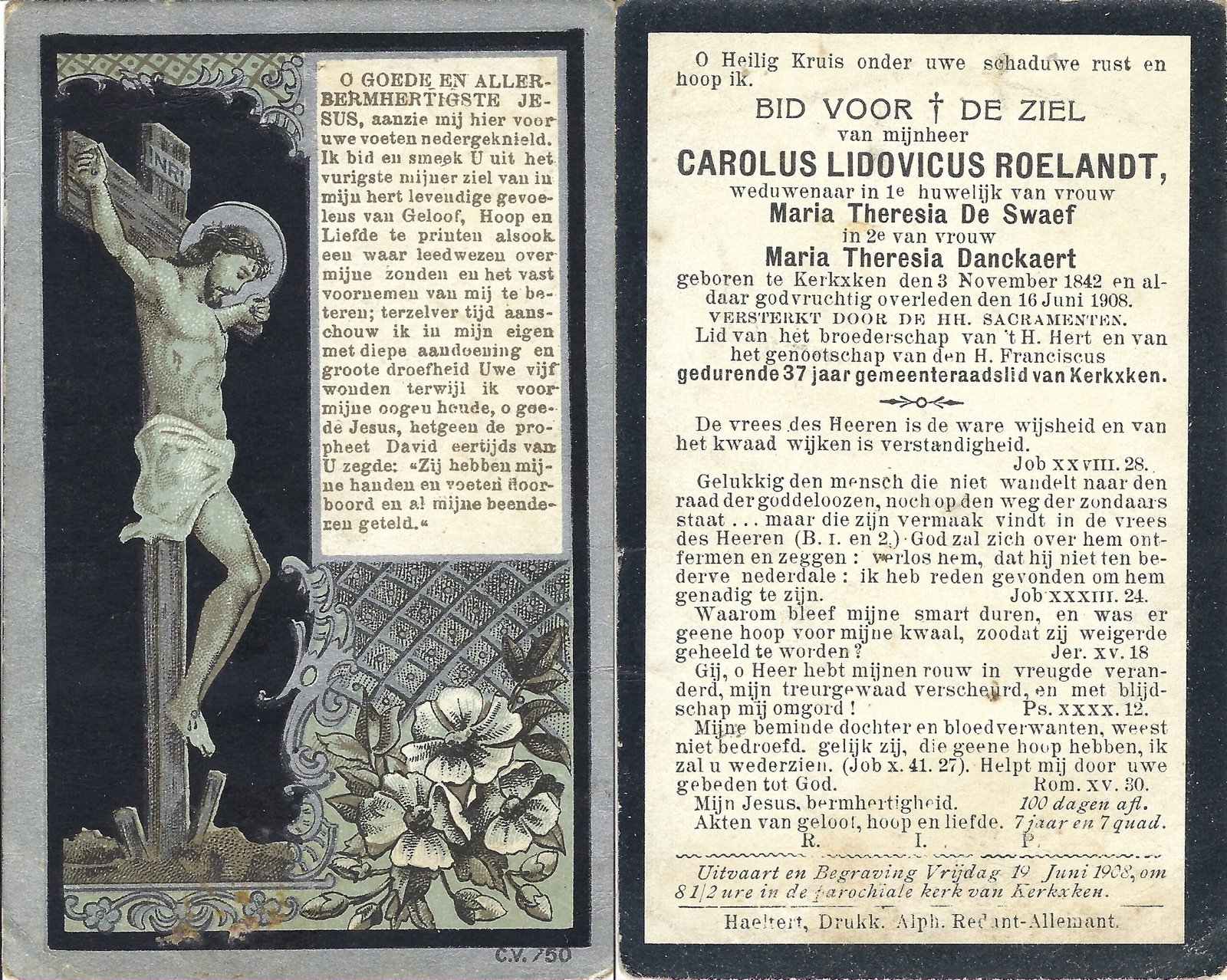 | Roelandt Carolus, Gemeenteraadslid Kerksken | Kerksken | 03/11/1842 | Kerksken | 16/06/1908 |