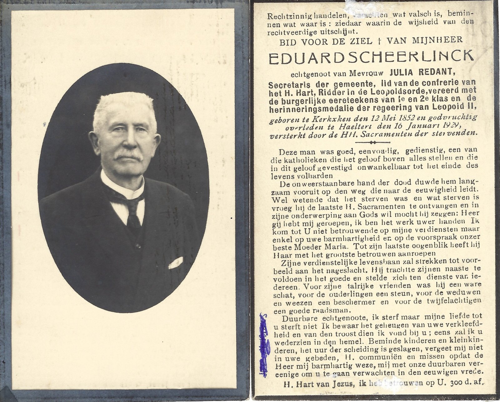 | Scheerlinck Eduard, Gemeentesecretaris Haaltert | Kerksken | 12/05/1852 | Haaltert | 16/01/1929 |