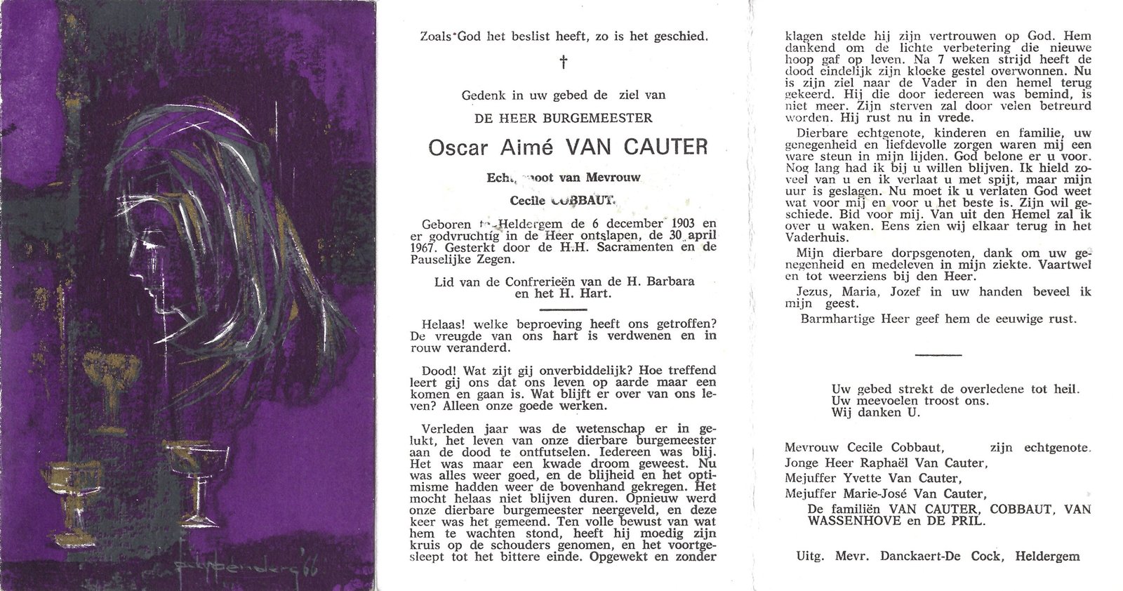 | Van Cauter Oscar, Burgemeester Heldergem | Heldergem | 06/12/1903 | Heldergem | 30/04/1967 |