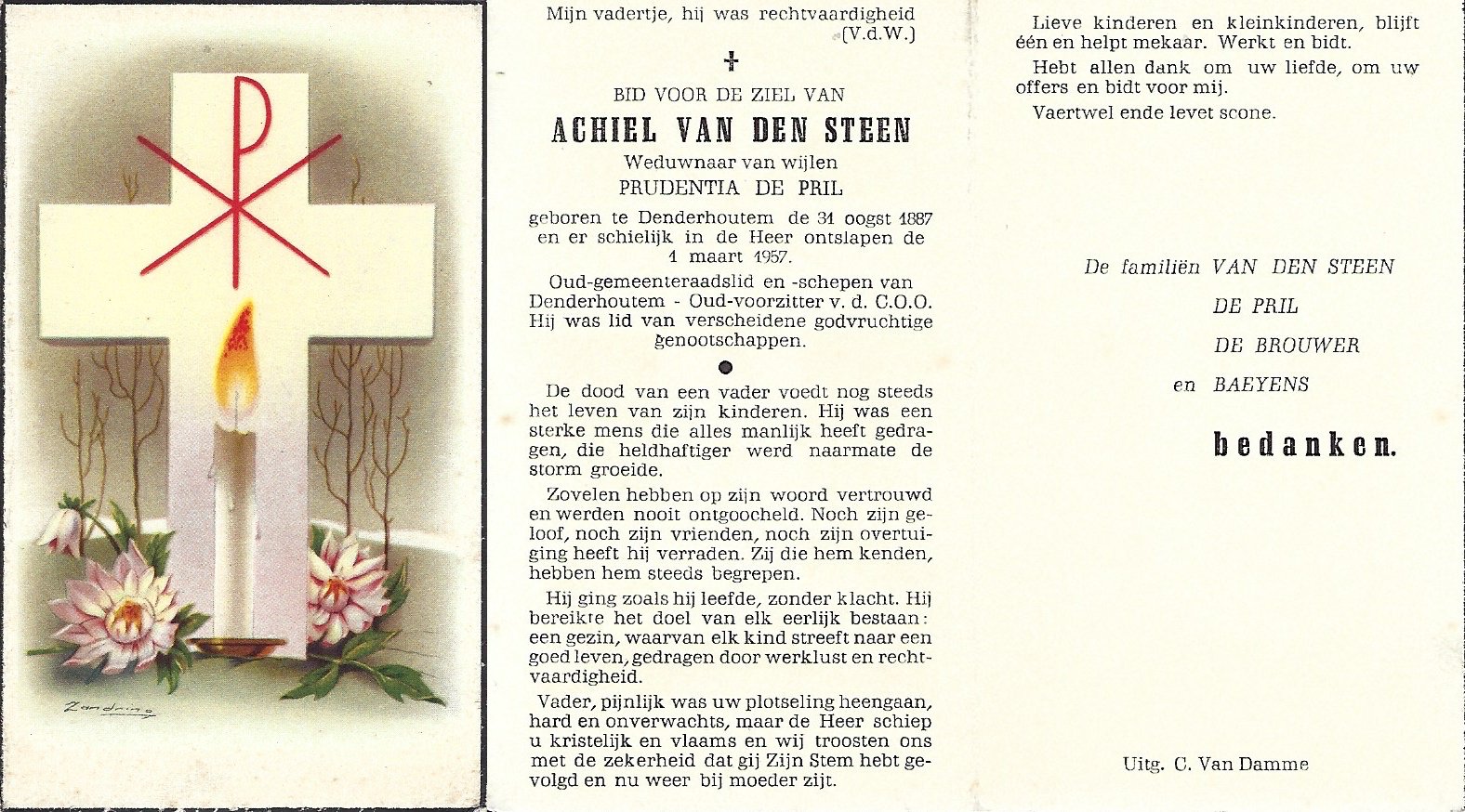 | Van Den Steen Achiel, Schepen Denderhoutem | Denderhoutem | 31/08/1887 | Denderhoutem | 01/03/1957 |