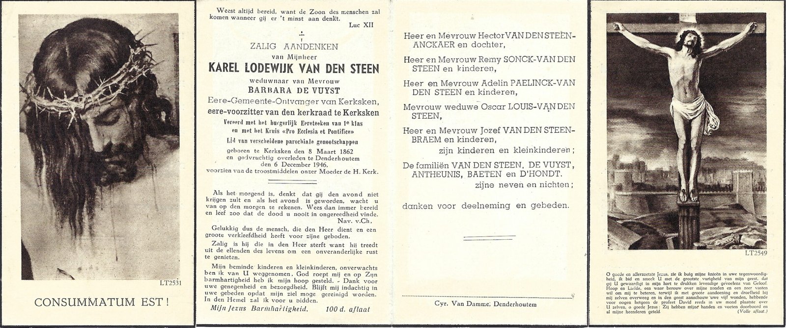 | Van Den Steen Karel, Gemeenteontvanger Kerksken | Kerksken | 08/03/1862 | Denderhoutem | 06/12/1946 |