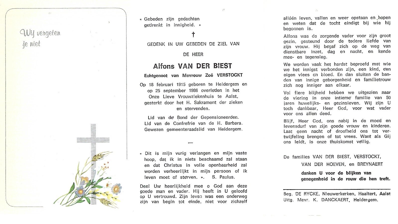| Van Der Biest Alfons, Gemeenteraadslid Heldergem | Heldergem | 18/02/1915 | Aalst | 25/09/1986 |