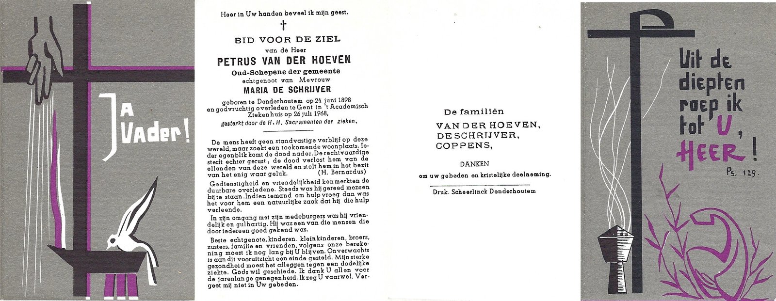 | Van Der Hoeven Petrus, Schepen Denderhoutem | Denderhoutem | 24/06/1898 | Gent | 26/07/1968 |