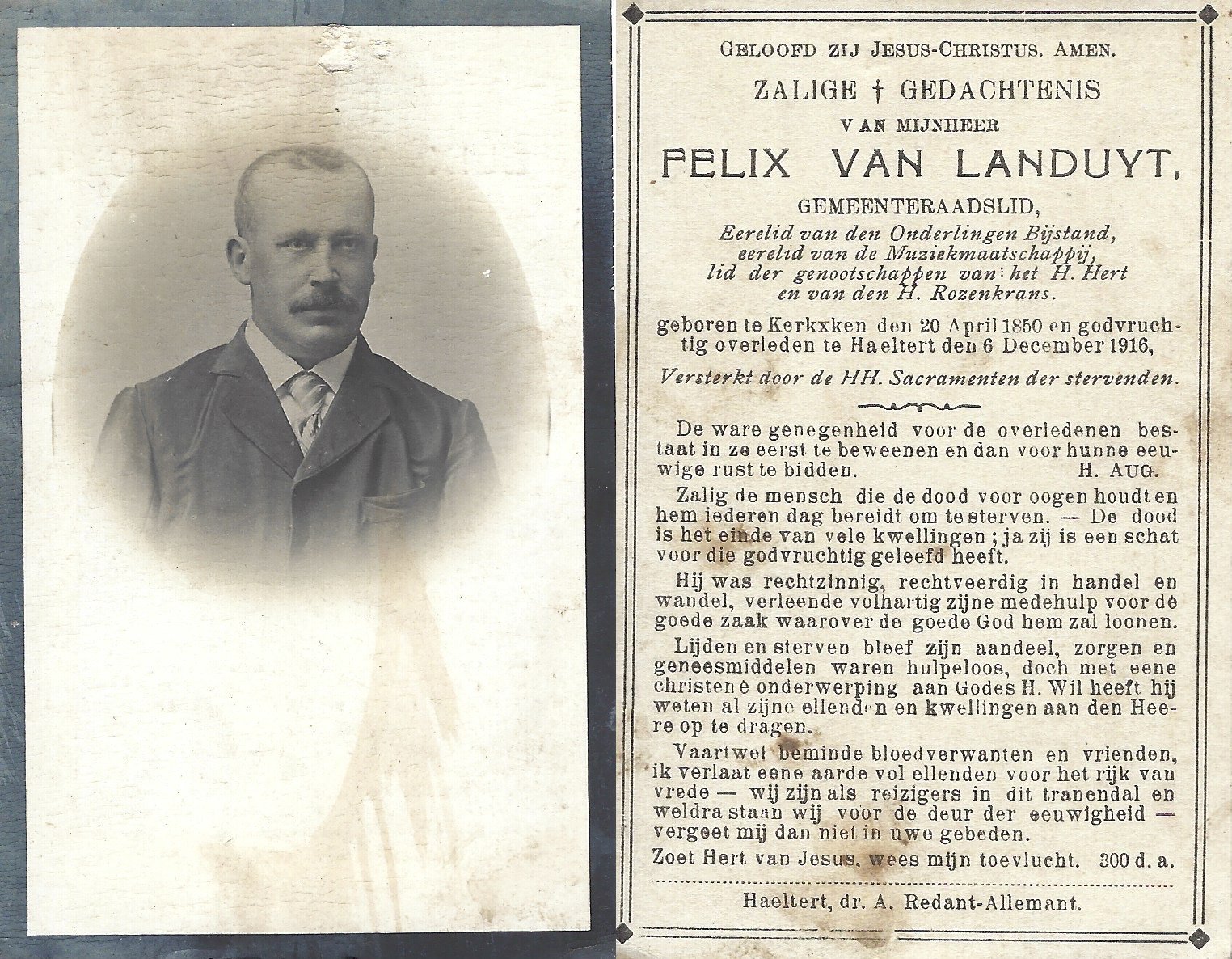 | Van Landuyt Felix, Gemeenteraadslid Haaltert | Kerksken | 20/04/1950 | Haaltert | 06/12/1916 |