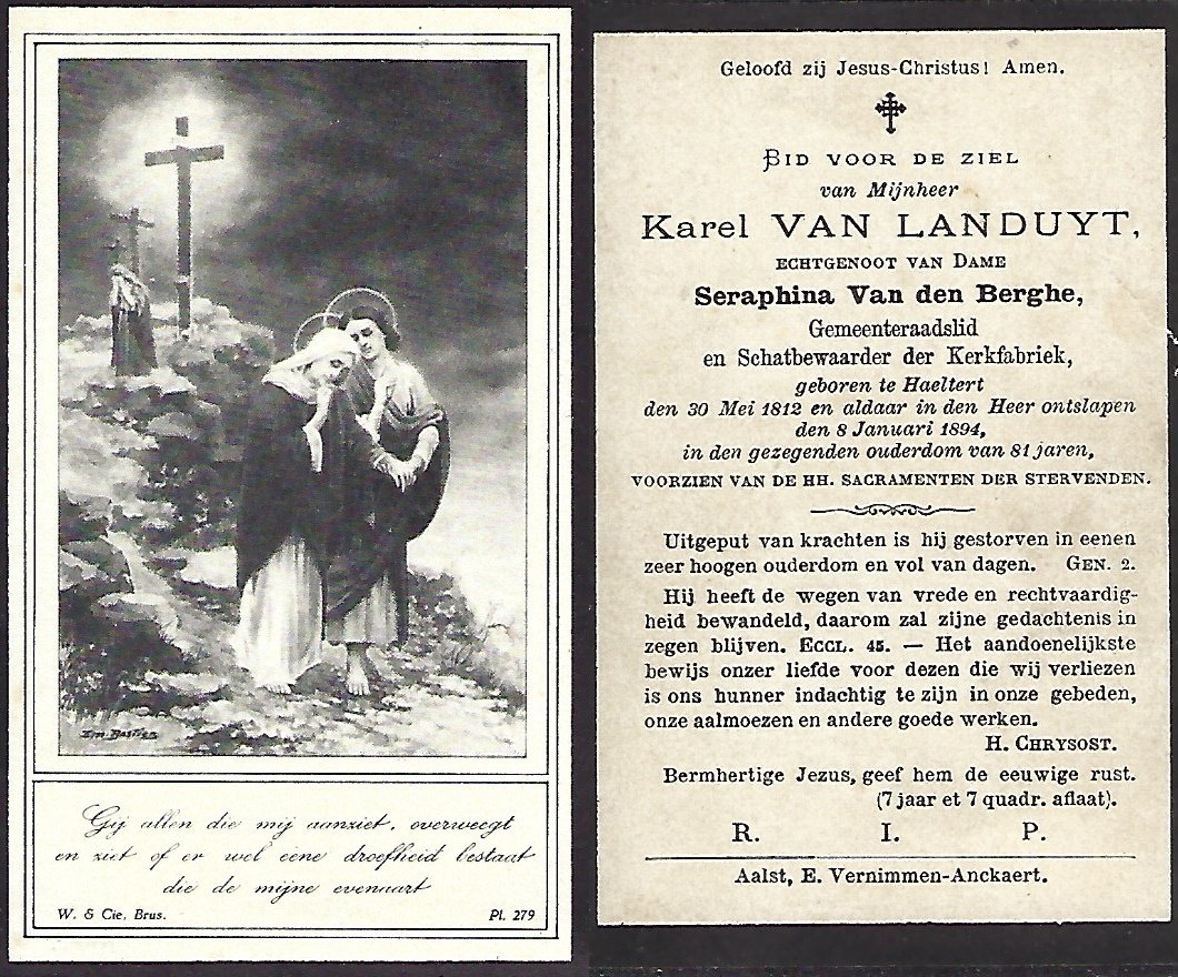 | Van Landuyt Karel, Gemeenteraadslid Haaltert | Haaltert | 30/05/1812 | Haaltert | 08/01/1894 |