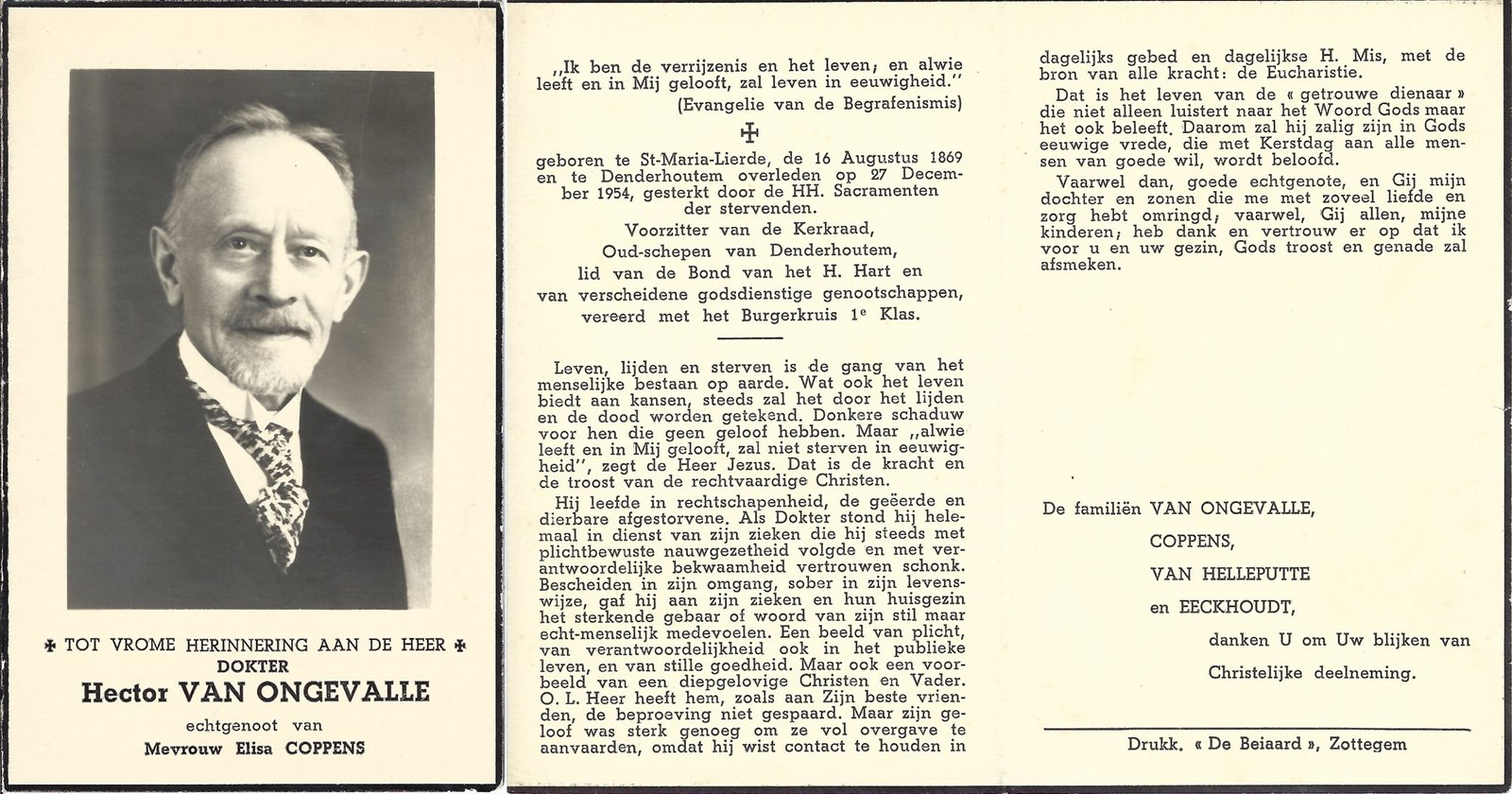 | Van Ongevalle Hector, Schepen Denderhoutem | Sint-Maria-Lierde | 16/08/1869 | Denderhoutem | 27/12/1954 |