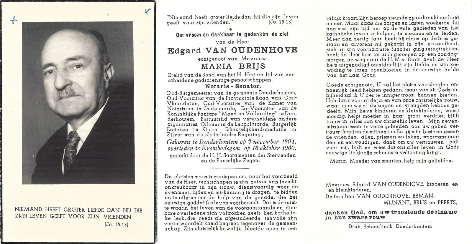| Van Oudenhove Edgard, Burgemeester Denderhoutem, Senator | Denderhoutem | 02/11/1894 | Erembodegem | 16/10/1960 |