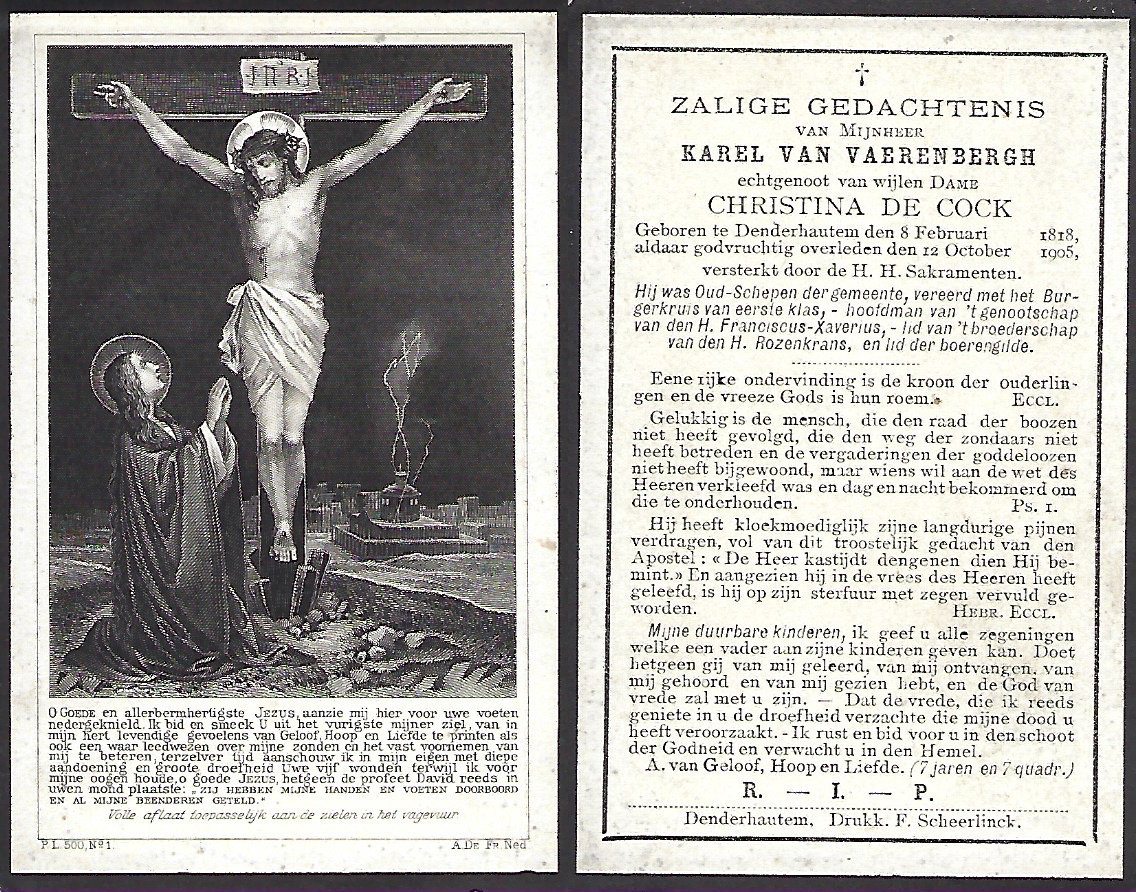 | Van Vaerenbergh Karel, Schepen Denderhoutem | Denderhoutem | 08/02/1818 | Denderhoutem | 12/10/1905 |