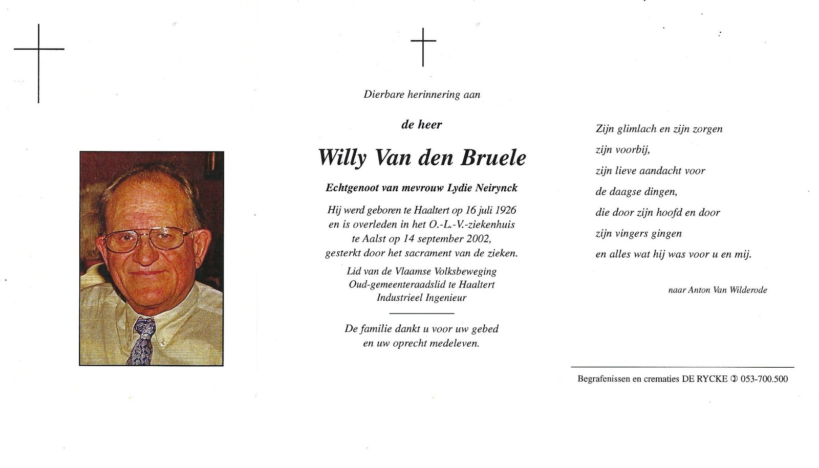 | Van den Bruele Willy, Gemeenteraadslid Haaltert | Haaltert | 16/07/1926 | Aalst | 14/09/2002 |