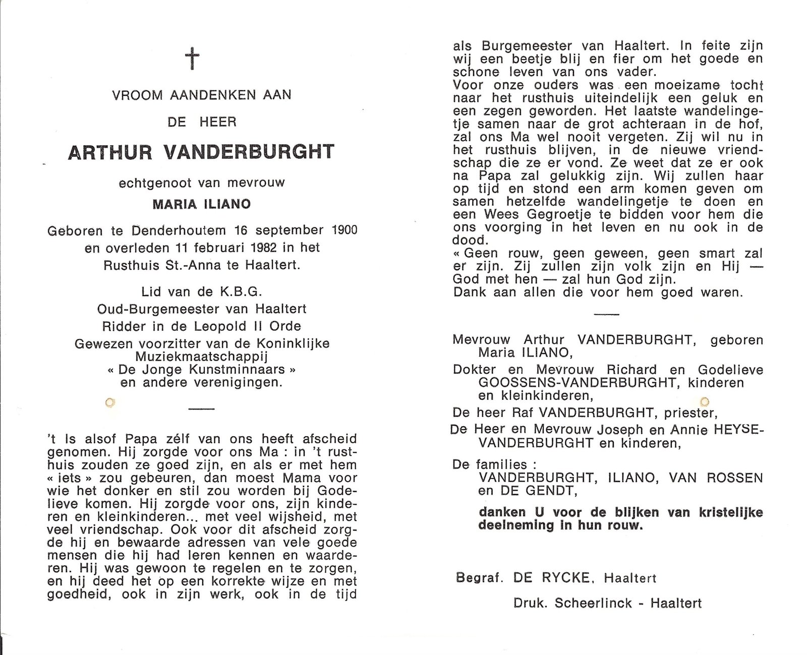 | Vanderburght Arthur, Burgemeester Haaltert | Denderhoutem | 16/09/1900 | Haaltert | 11/02/1982 |