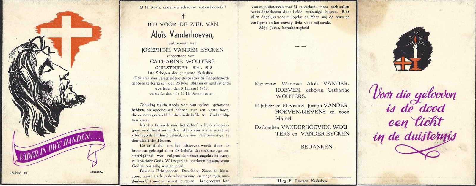 | Vanderhoeven Aloïs, Schepen Kerksken | Kerksken | 28/05/1881 | Kerksken | 03/01/1948 |