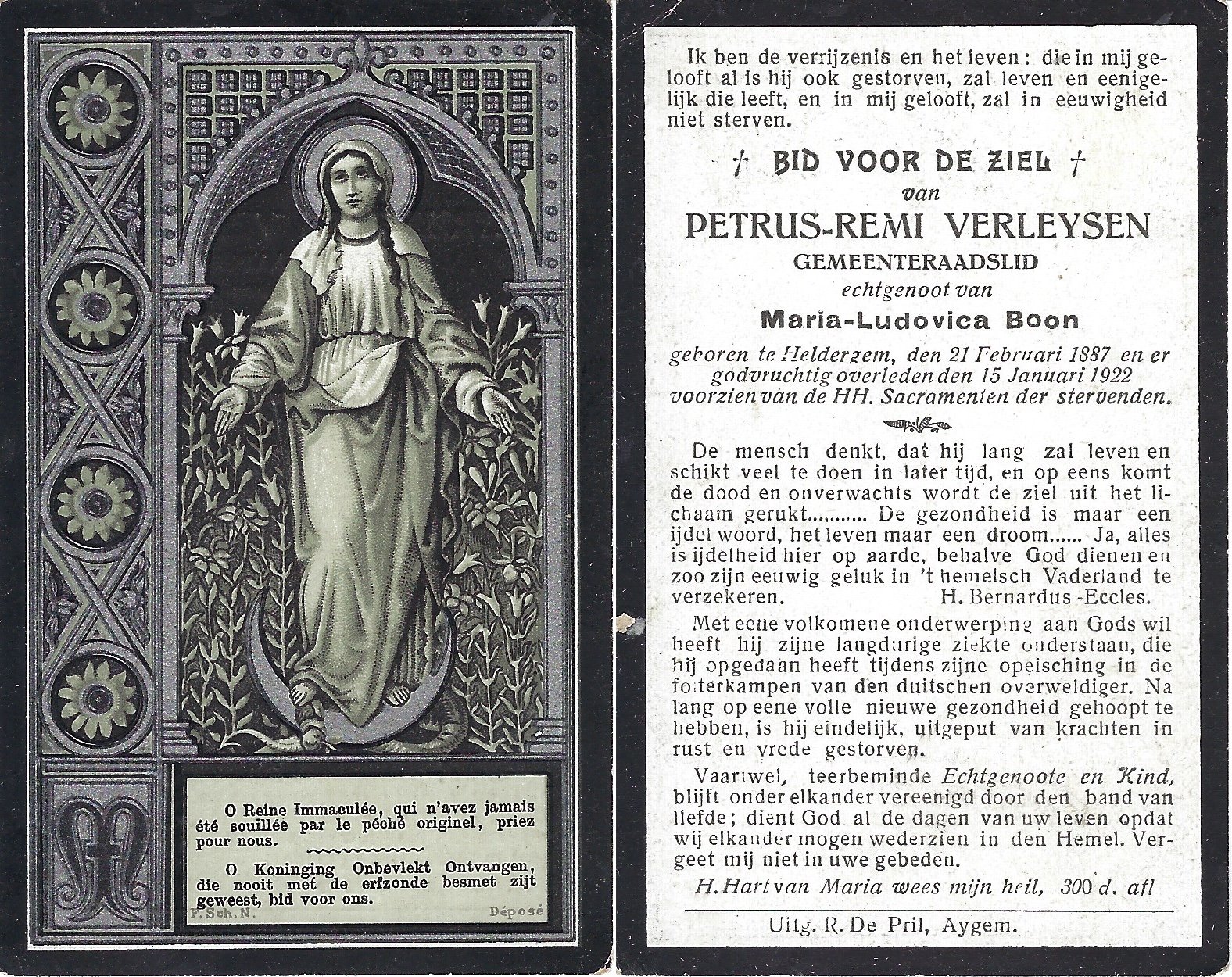| Verleysen Petrus, Gemeenteraadslid Heldergem | Heldergem | 21/02/1887 | Heldergem | 15/01/1922 |