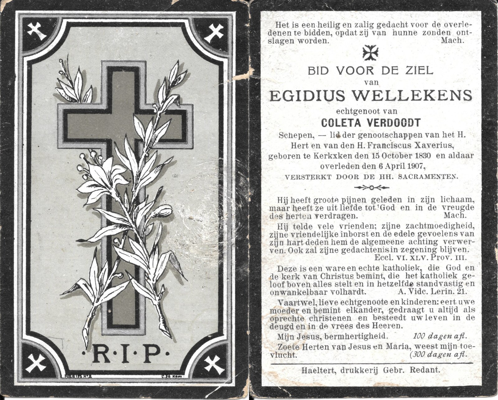 | Wellekens Egidius, Schepen Kerksken | Kerksken | 15/10/1830 | Kerksken | 06/04/1907 |