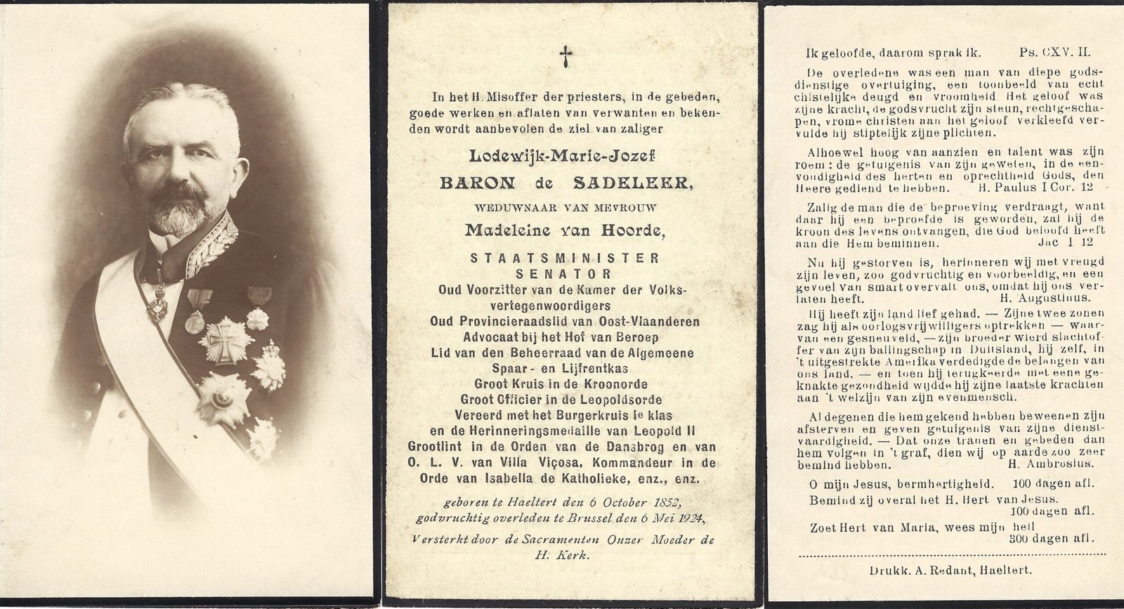 | de Sadeleer Lodewijk, Senator | Haaltert | 06/10/1852 | Brussel | 06/05/1925 |