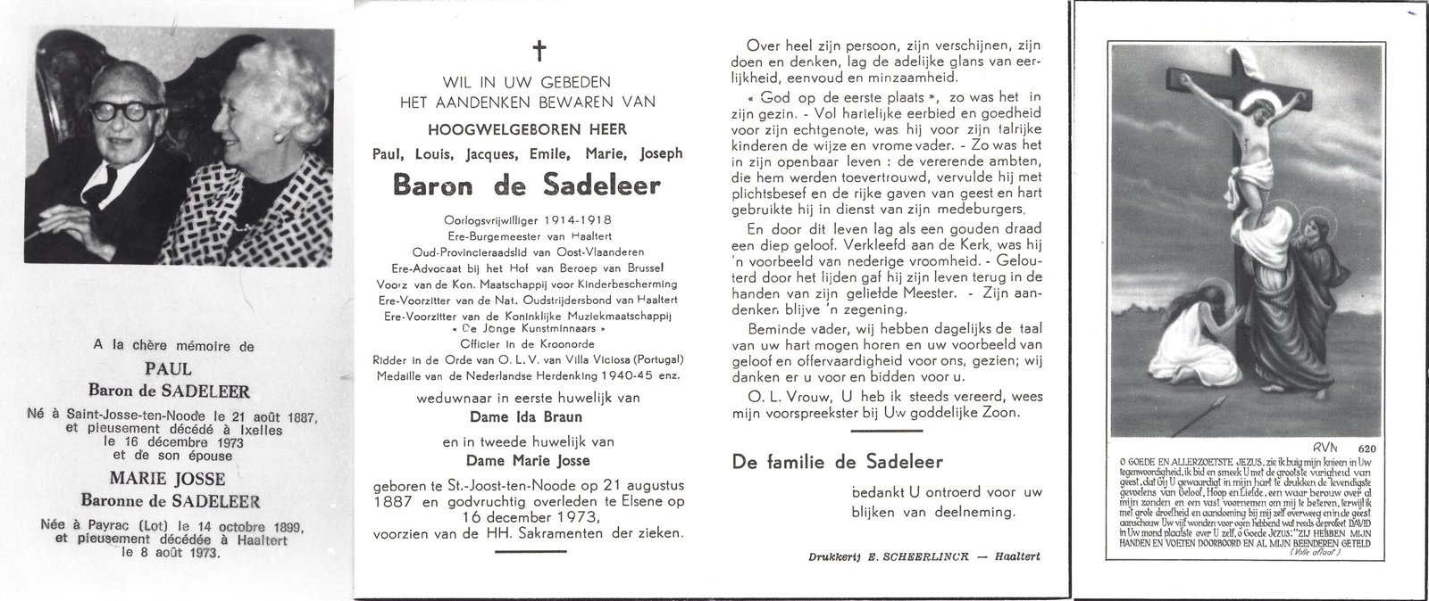 | de Sadeleer Paul, Burgemeester Haaltert | Sint-Joost-ten-Noode | 21/08/1887 | Elsene | 16/12/1973 |