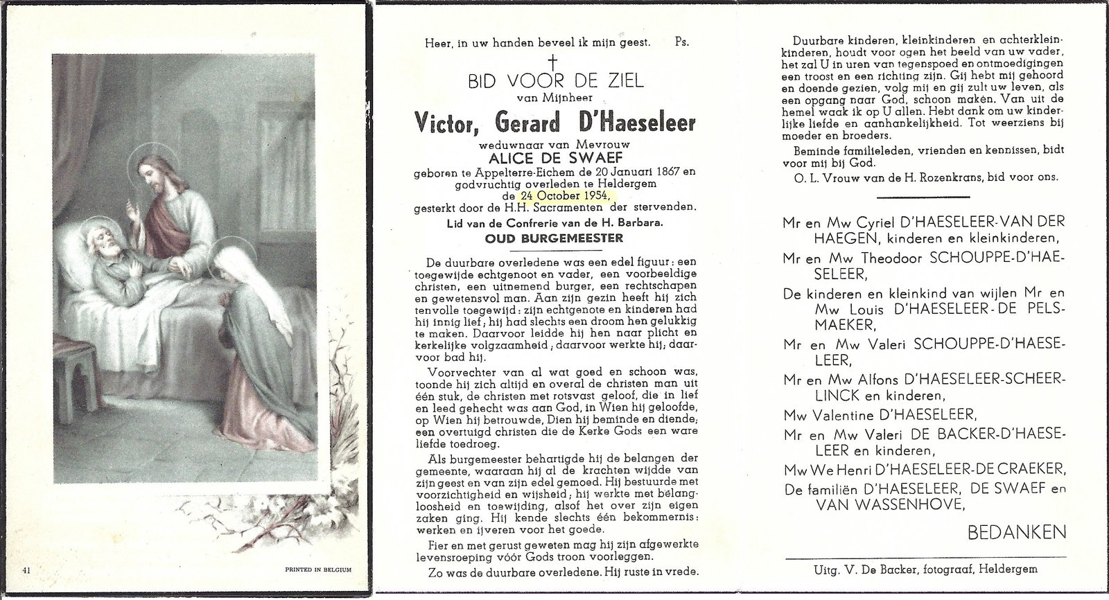 | D’Haeseleer Jan-Baptist, Burgemeester Heldergem | Appelterre | 24/08/1868 | Heldergem | 25/08/1920 |