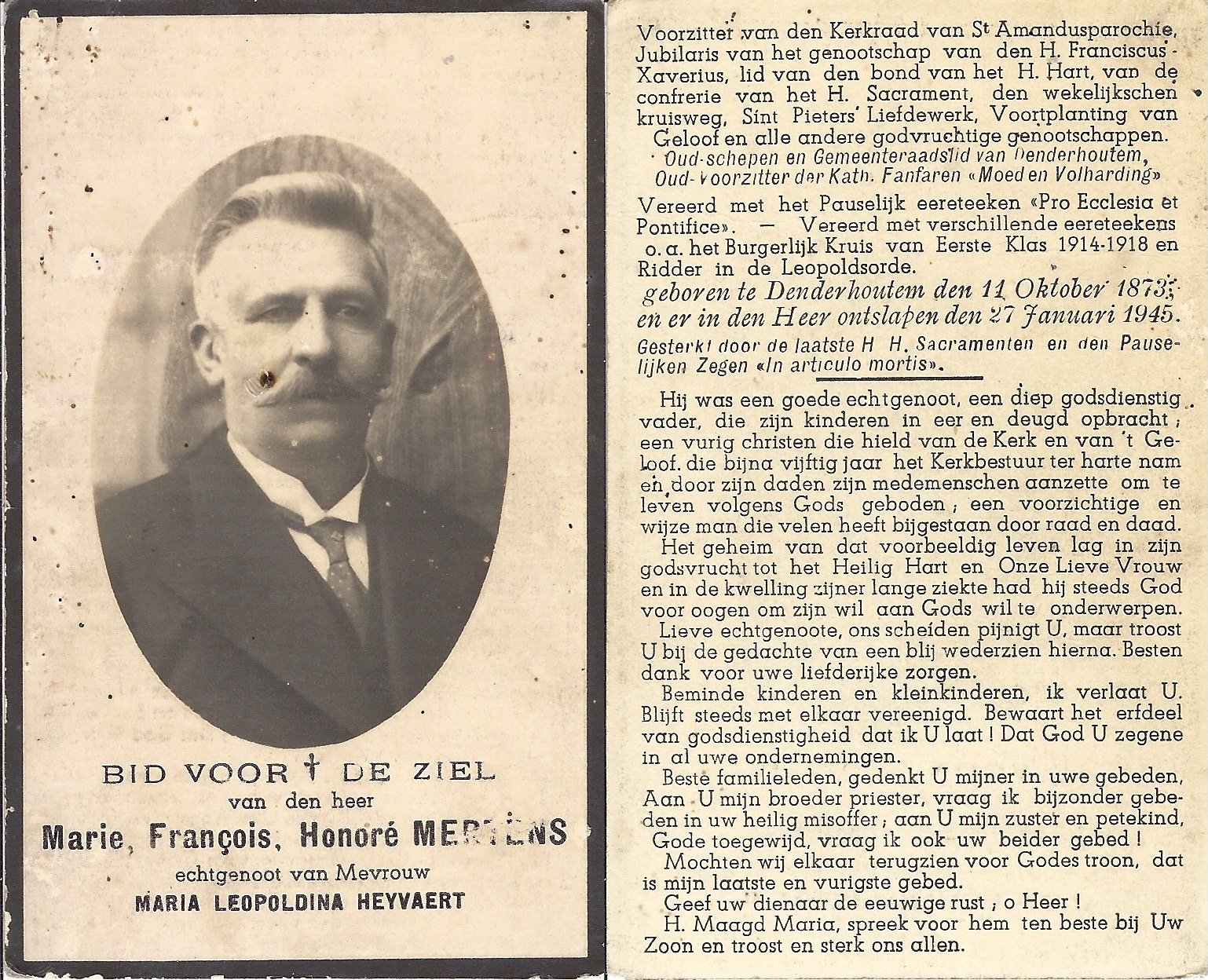 | Mertens Marie, Schepen Denderhoutem | Denderhoutem | 11/10/1873 | Denderhoutem | 27/01/1945 |