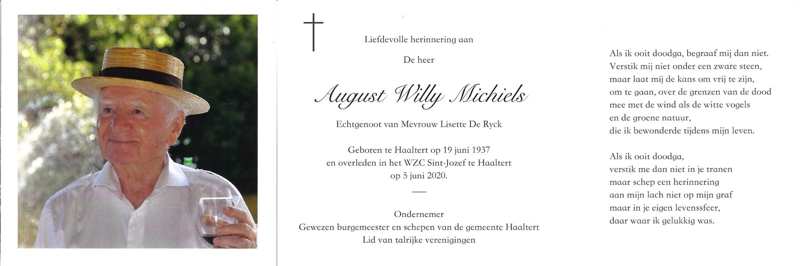 | Michiels Willy, Burgemeester Kerksken en Haaltert | Haaltert | 19/06/1937 | Haaltert | 05/06/1920 |