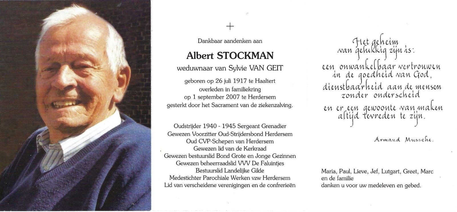 | Stockman Albert, Schepen Herdersem | Haaltert | 26/06/1917 | Herdersem | 01/09/2007 |
