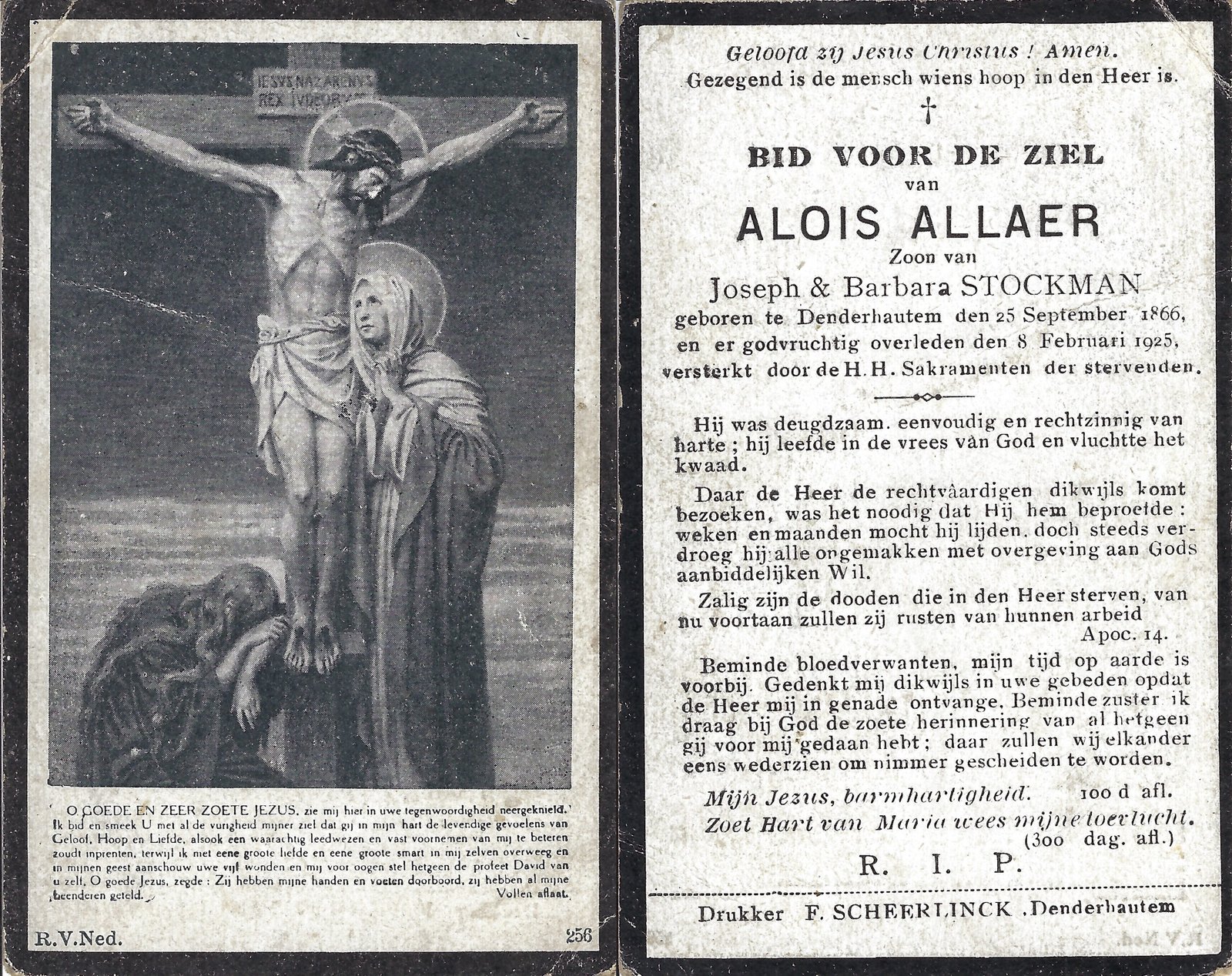 | Allaer AloĂŻs | Denderhoutem | 25/09/1866 | Denderhoutem | 08/02/1925 | |