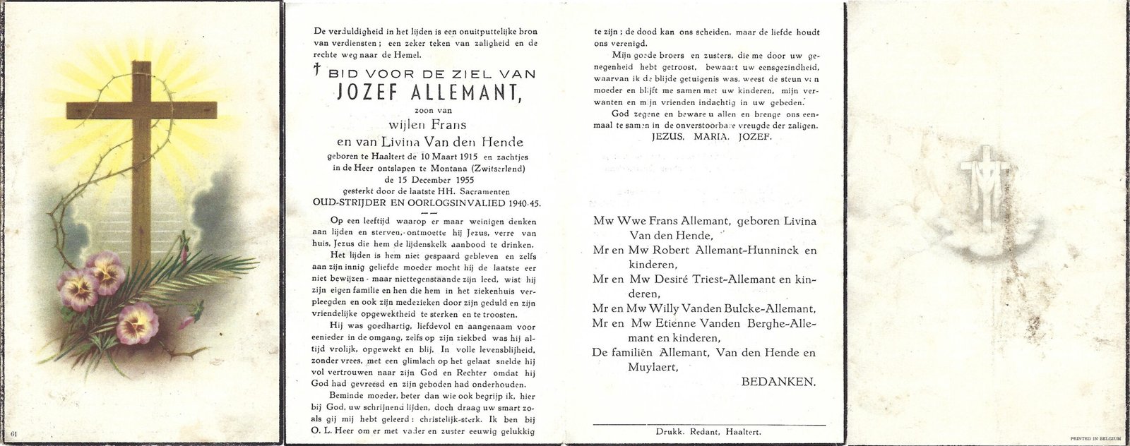 | Allemant Jozef | Haaltert | 10/03/1915 | Montana (Zwi) | 15/12/1955 | |