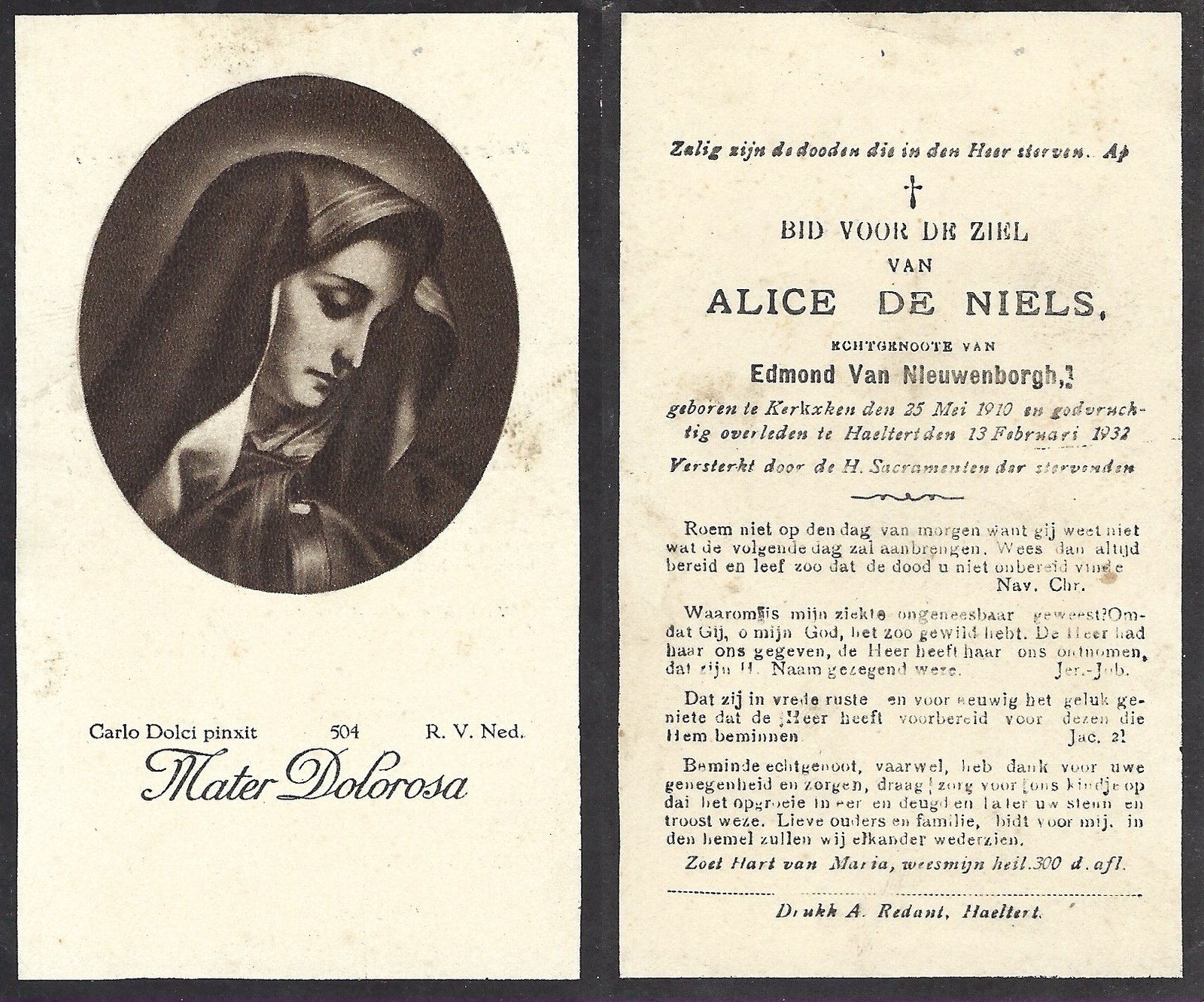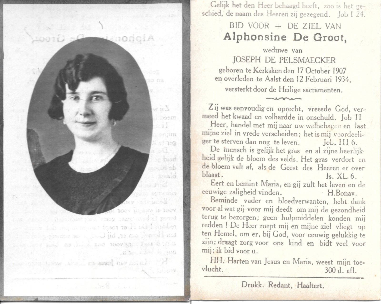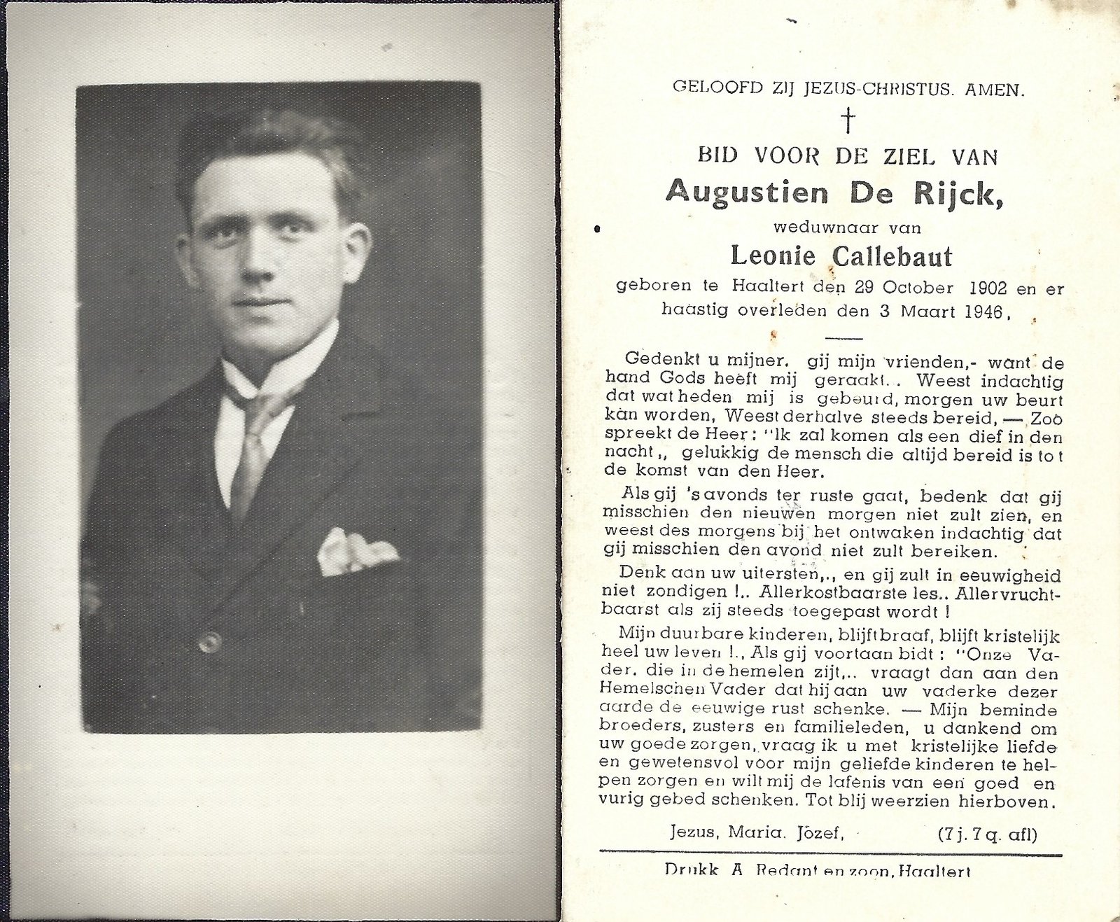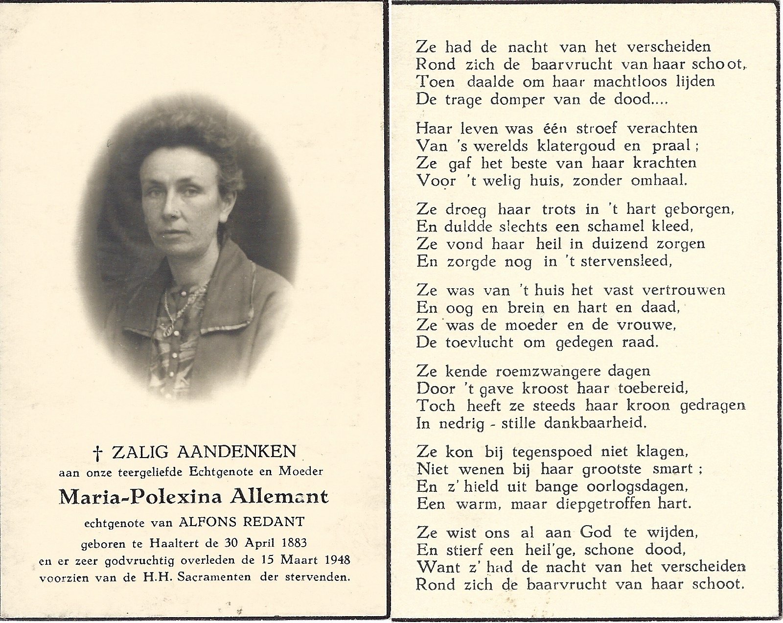 | Allemant Maria-Polexina | Redant Alfons | Haaltert | 30/04/1883 | Haaltert | 15/03/1948 |