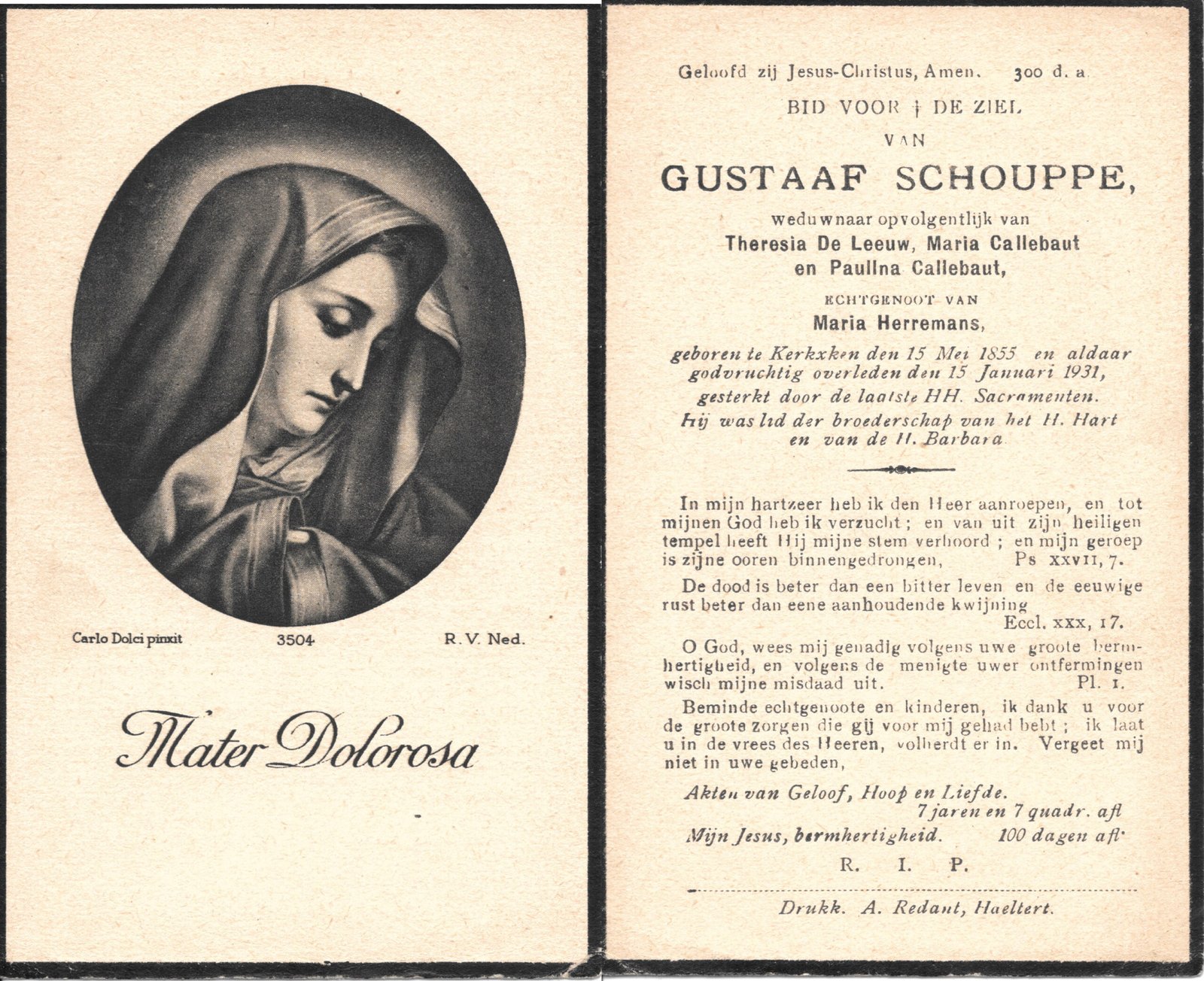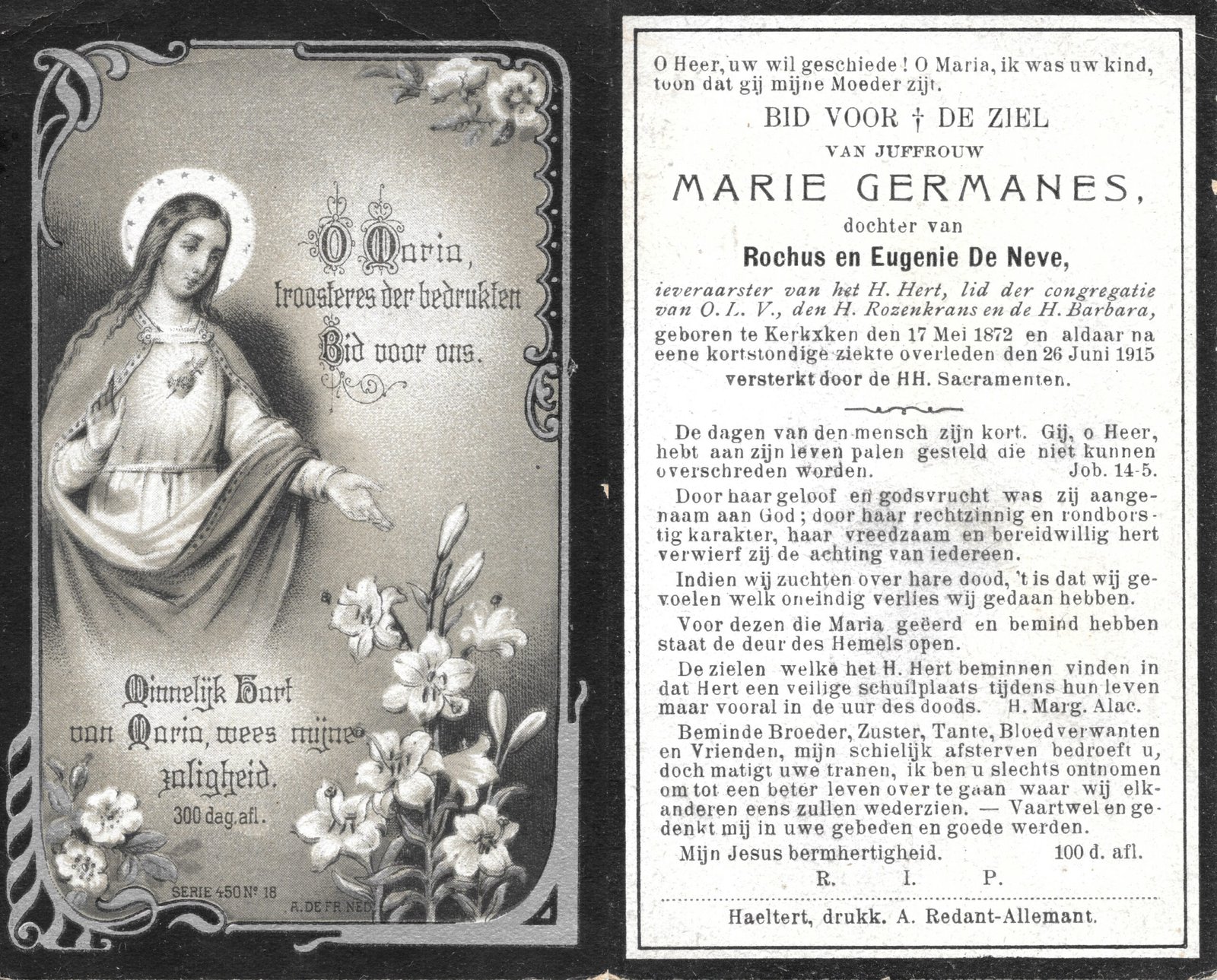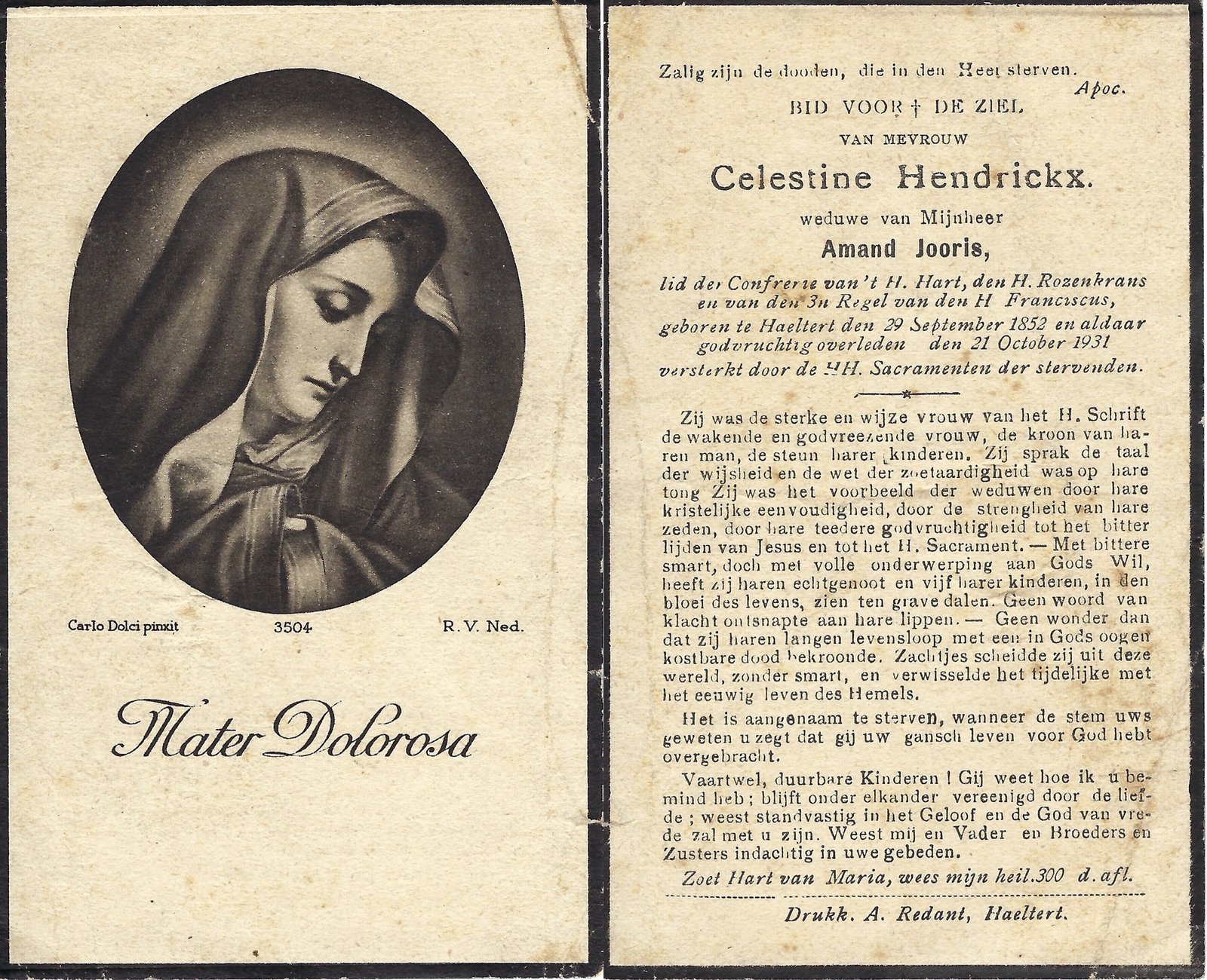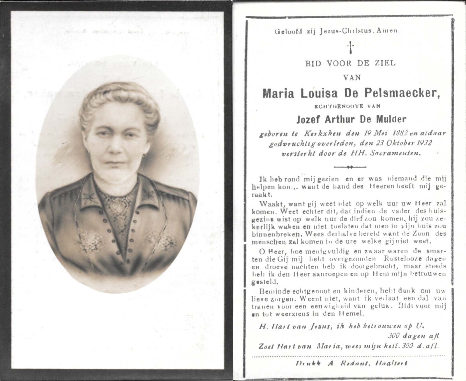 | Allemant Maria-Polexina | Redant Alfons | Haaltert | 30/04/1883 | Haaltert | 15/03/1948 |