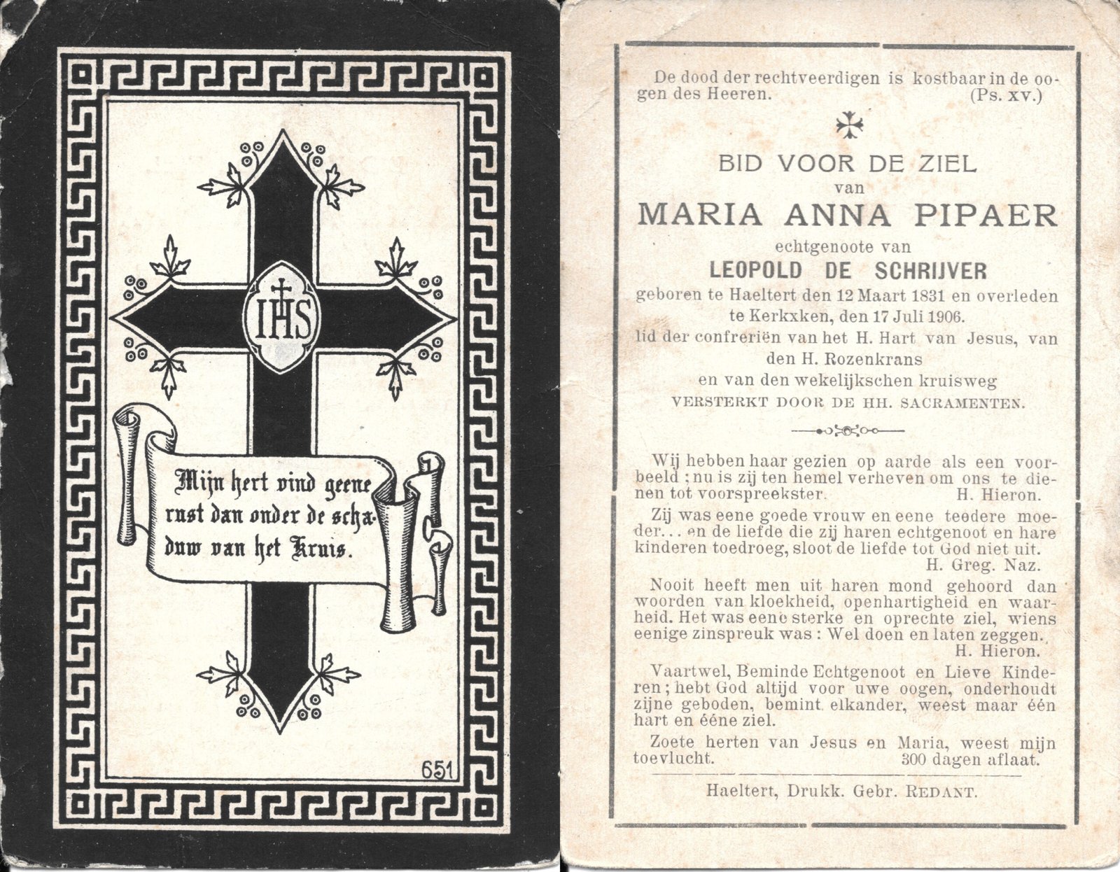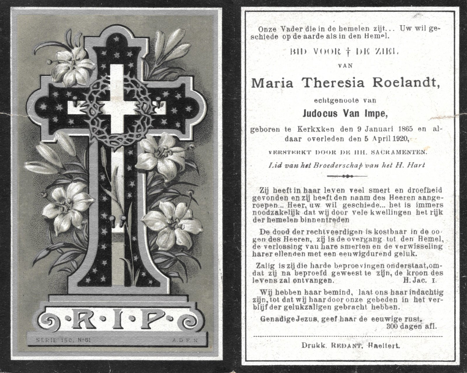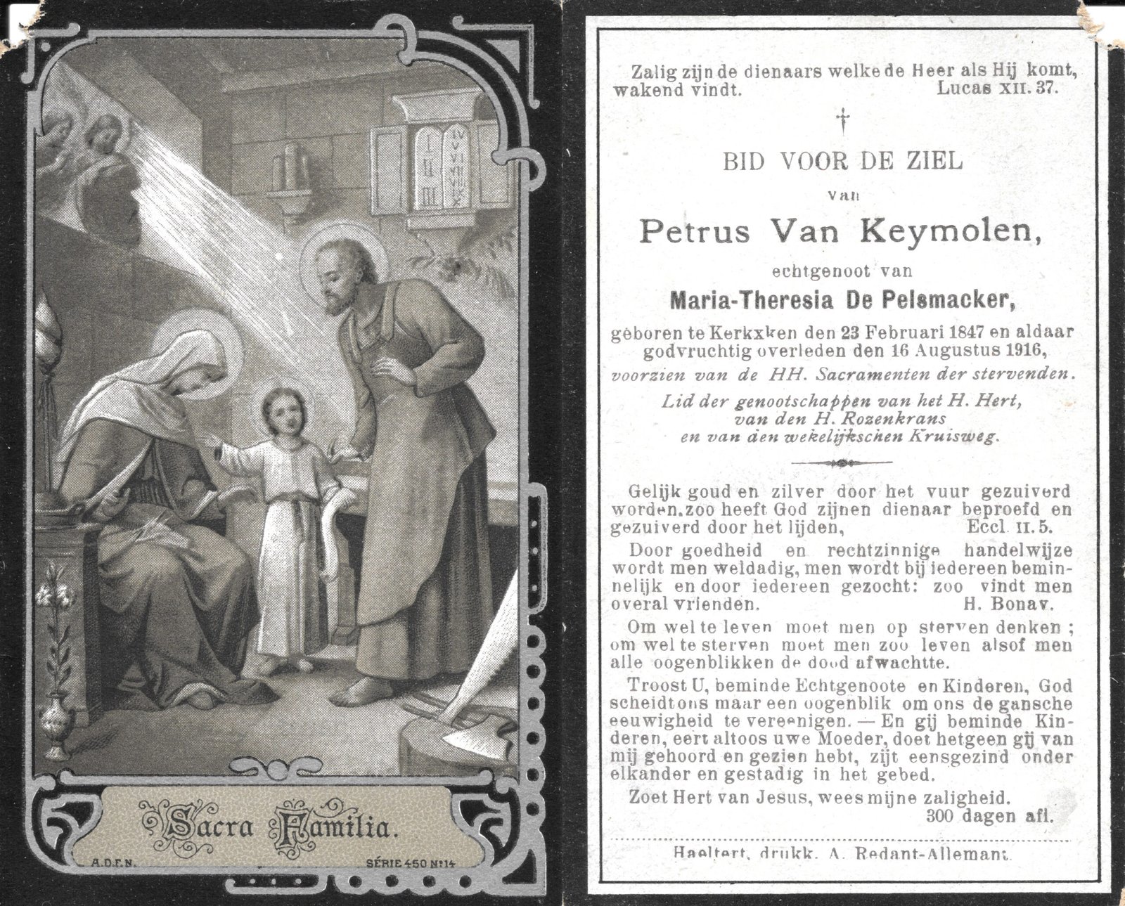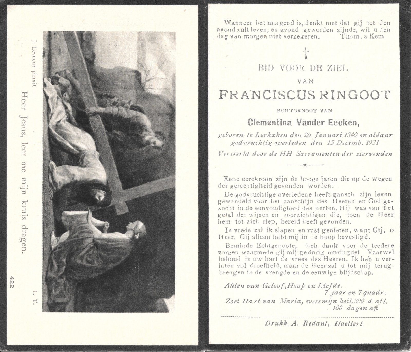 | Allemant Maria-Polexina | Redant Alfons | Haaltert | 30/04/1883 | Haaltert | 15/03/1948 |