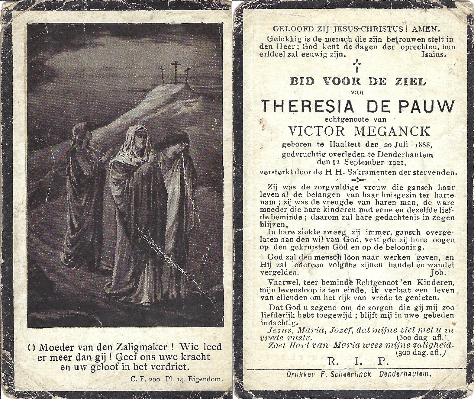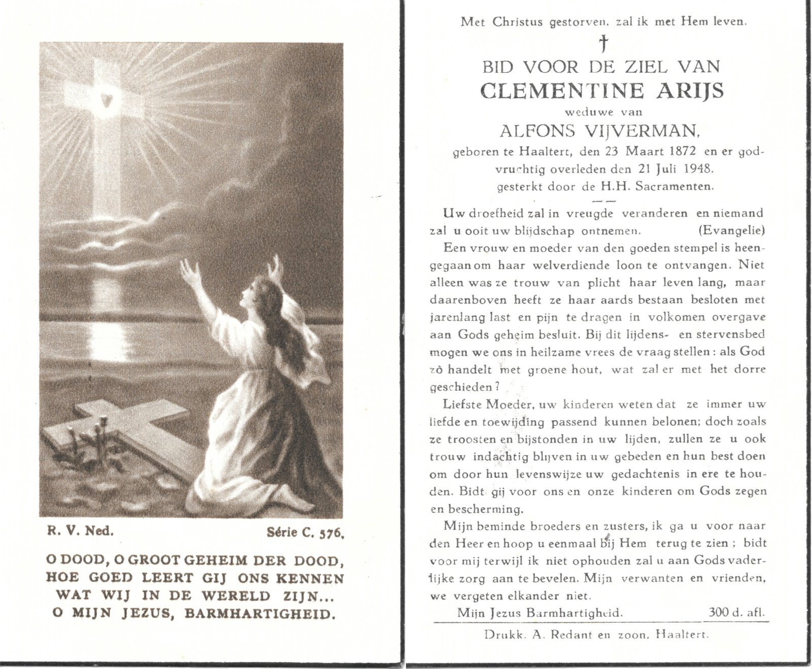 | Arijs Clementine | Vijverman Alfons | Haaltert | 23/03/1872 | Haaltert | 21/07/1948 |