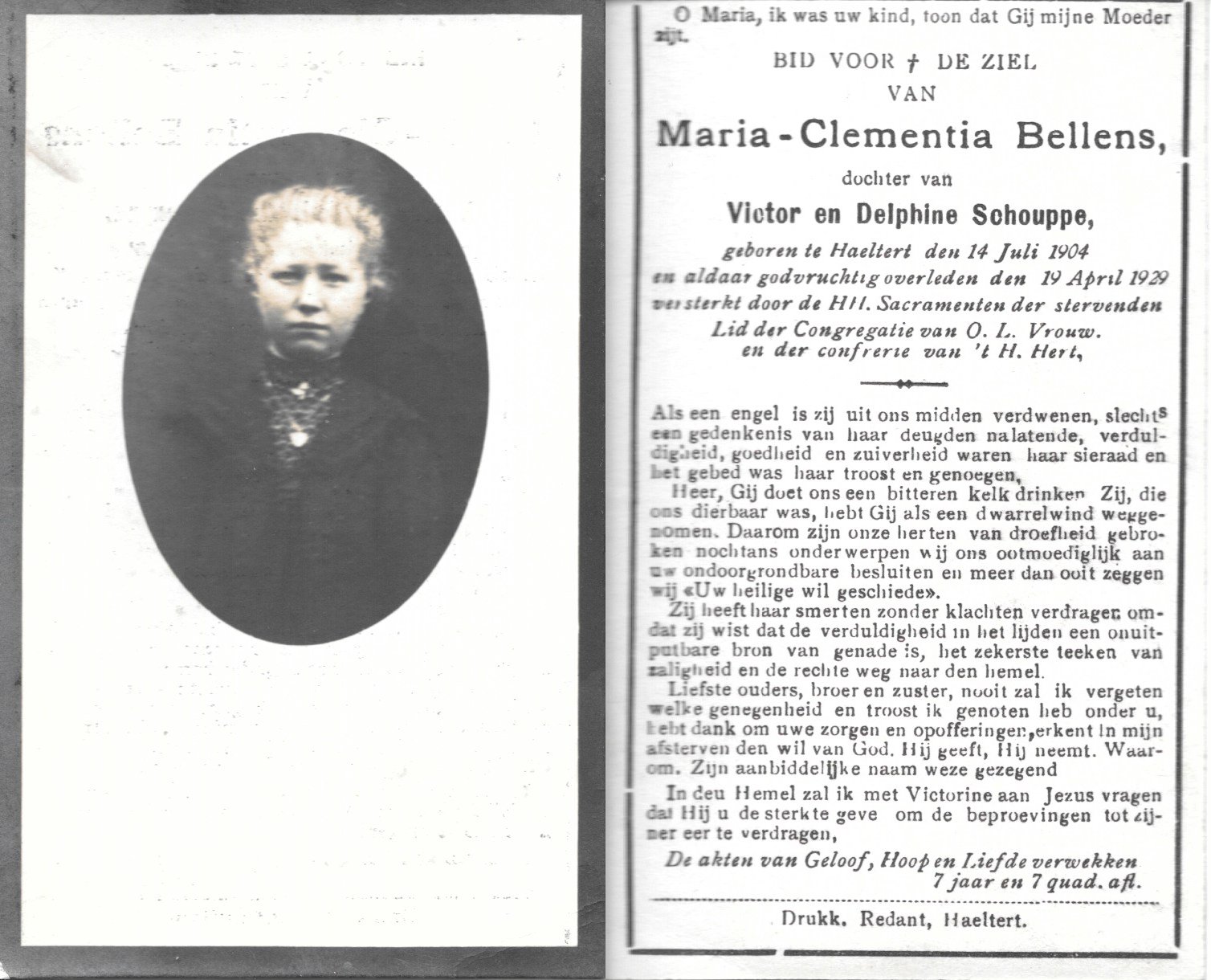 | Bellens Maria-Clementia | Haaltert | 14/07/1904 | Haaltert | 19/04/1929 | |