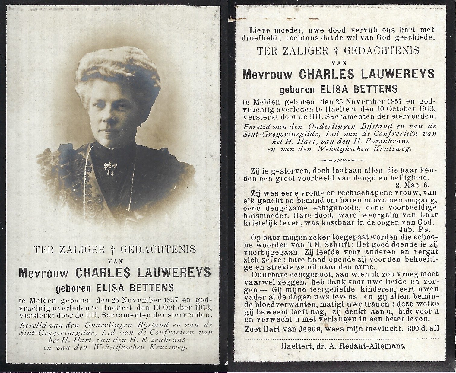 | Bettens Elisa | Lauwereys Charles | Melden | 25/11/1857 | Haaltert | 10/10/1913 |