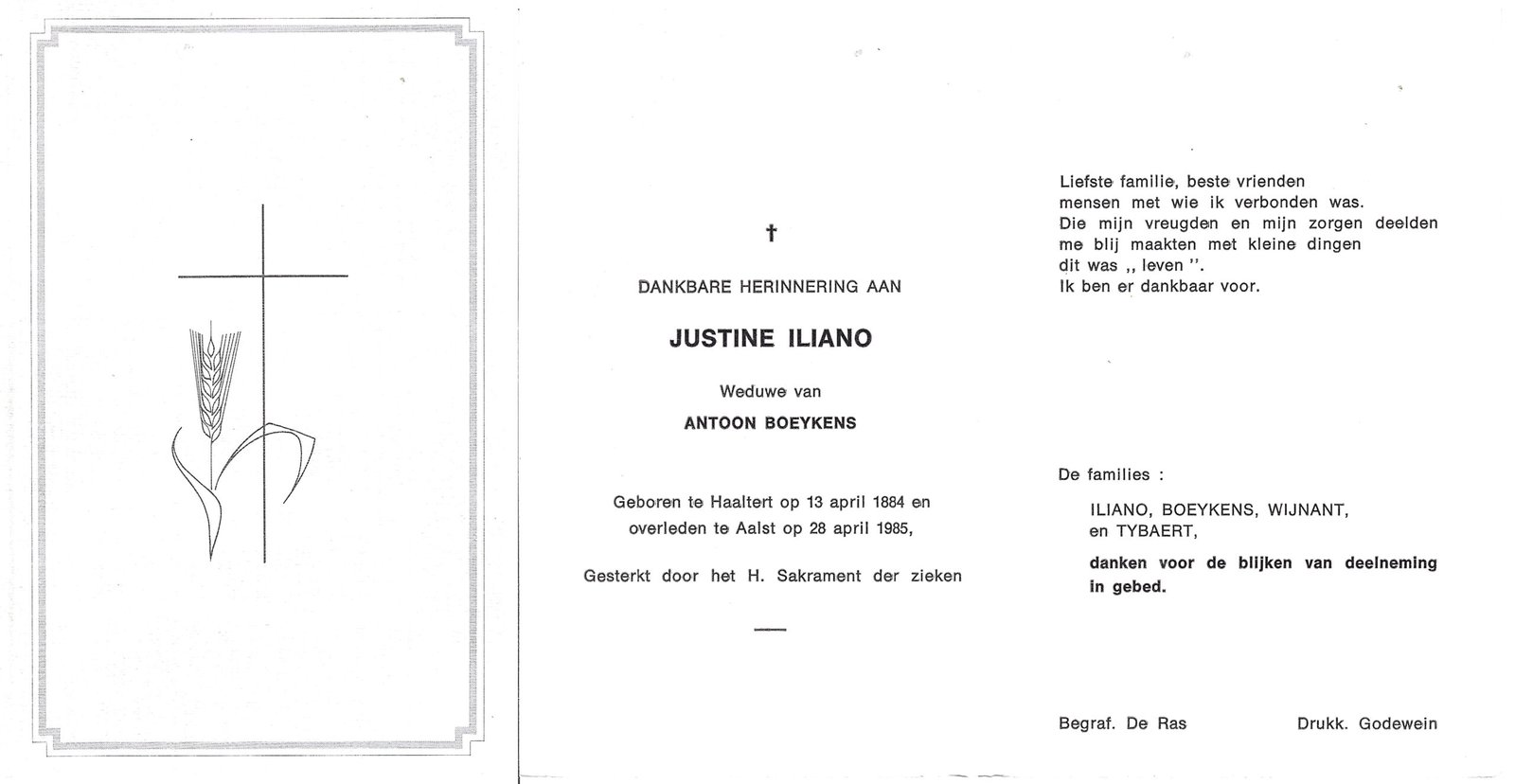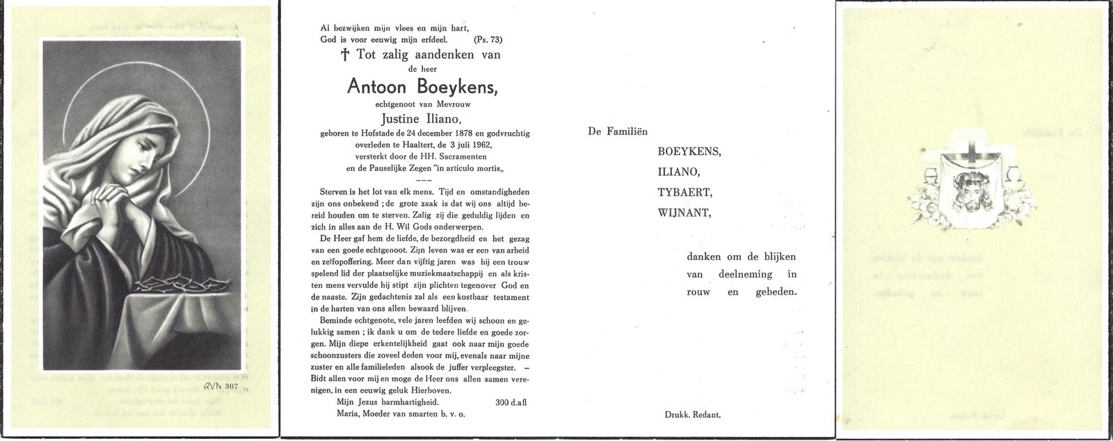 | Boeykens Antoon | Iliano Justine | Hofstade | 24/12/1878 | Haaltert | 03/07/1962 |