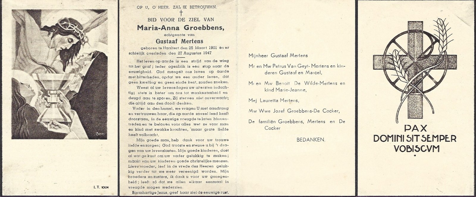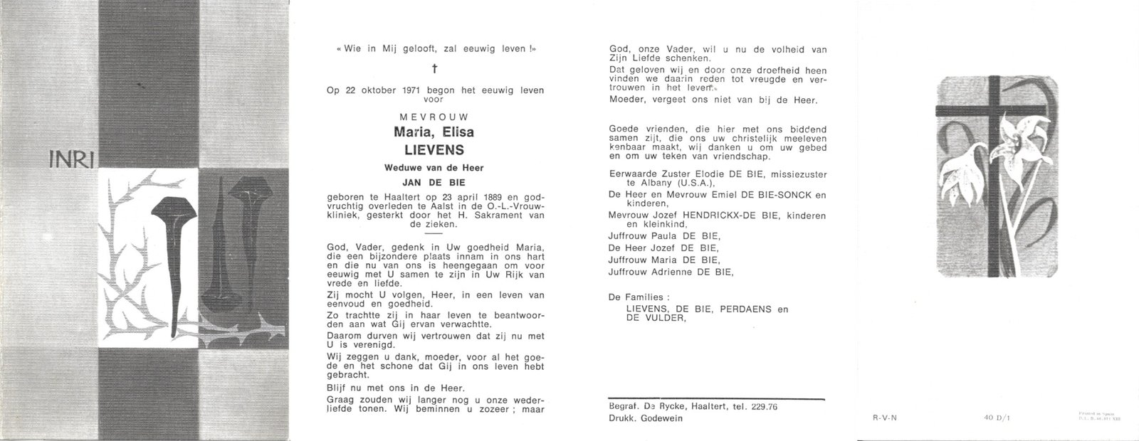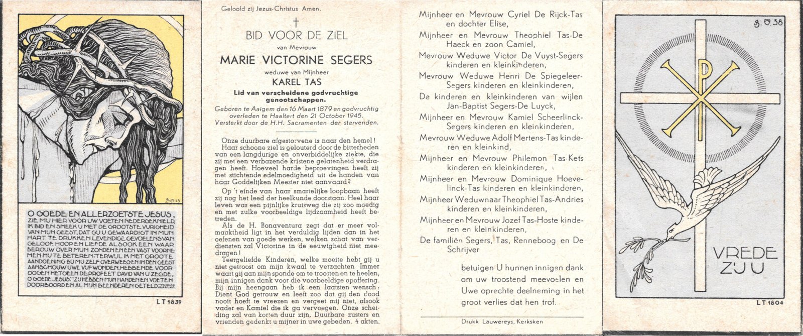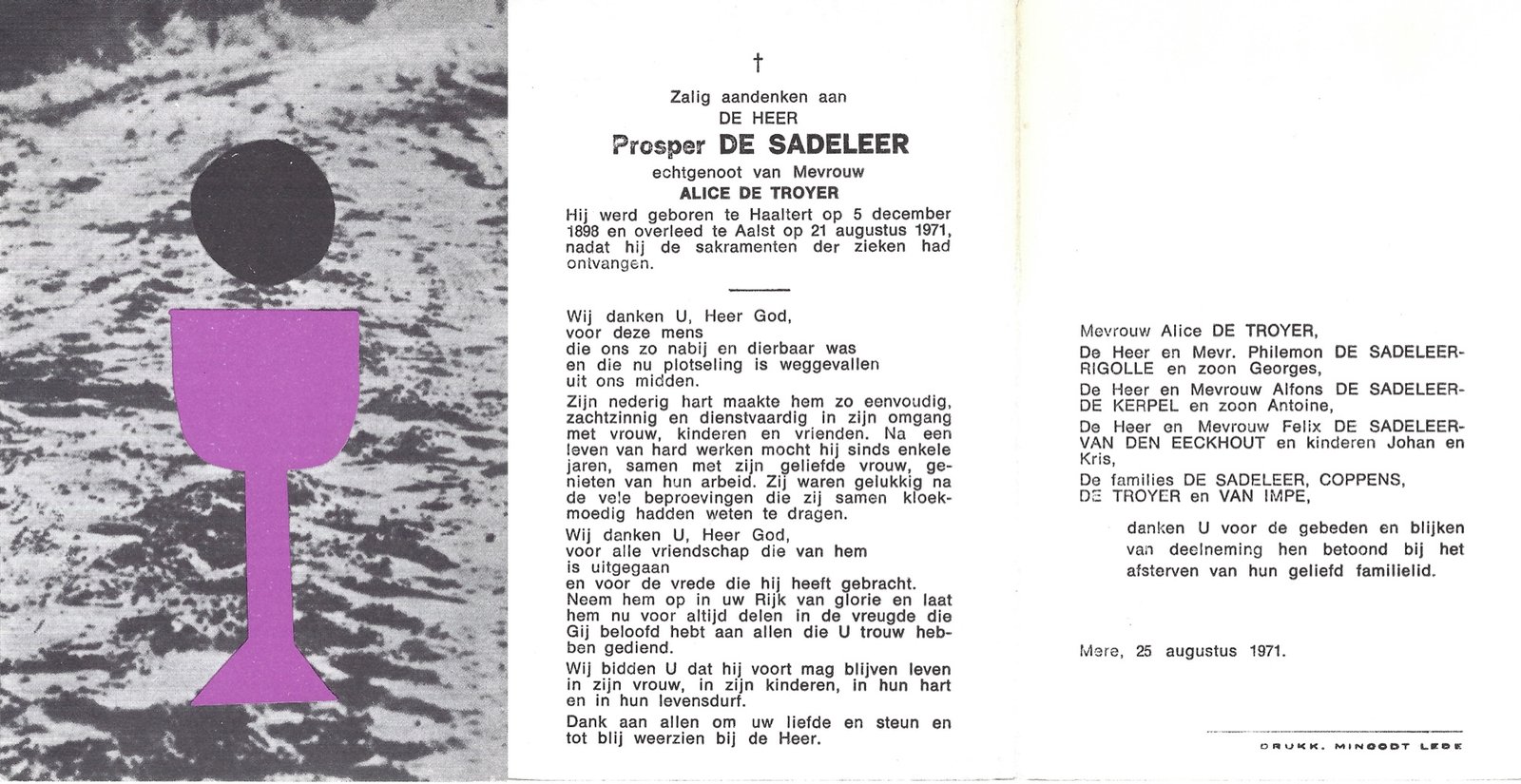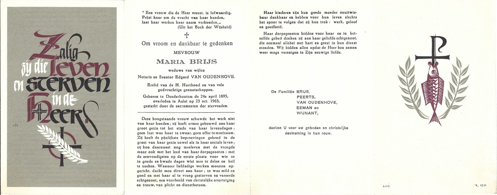 | Brijs Maria | Van Oudenhove Edgard | Denderhoutem | 24/04/1895 | Aalst | 23/10/1963 |