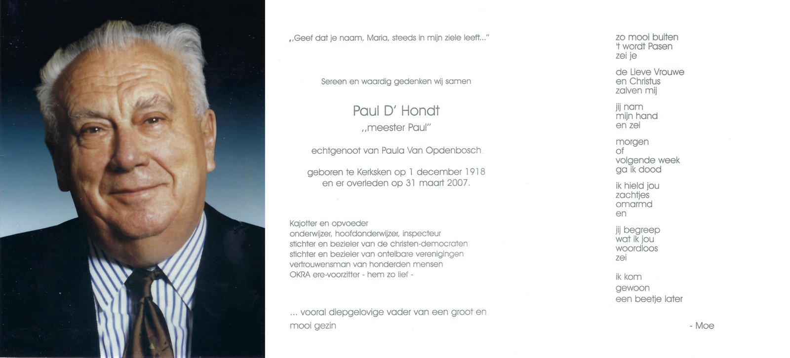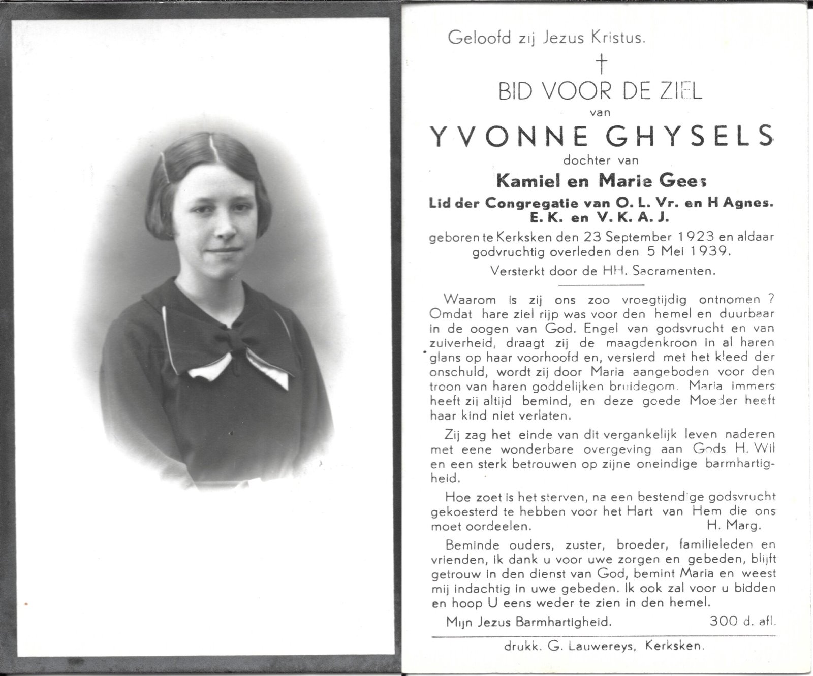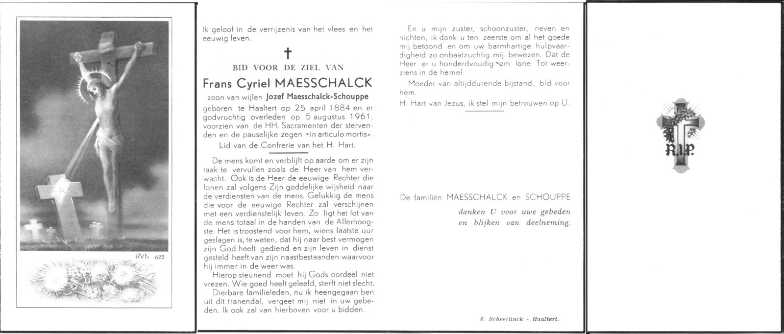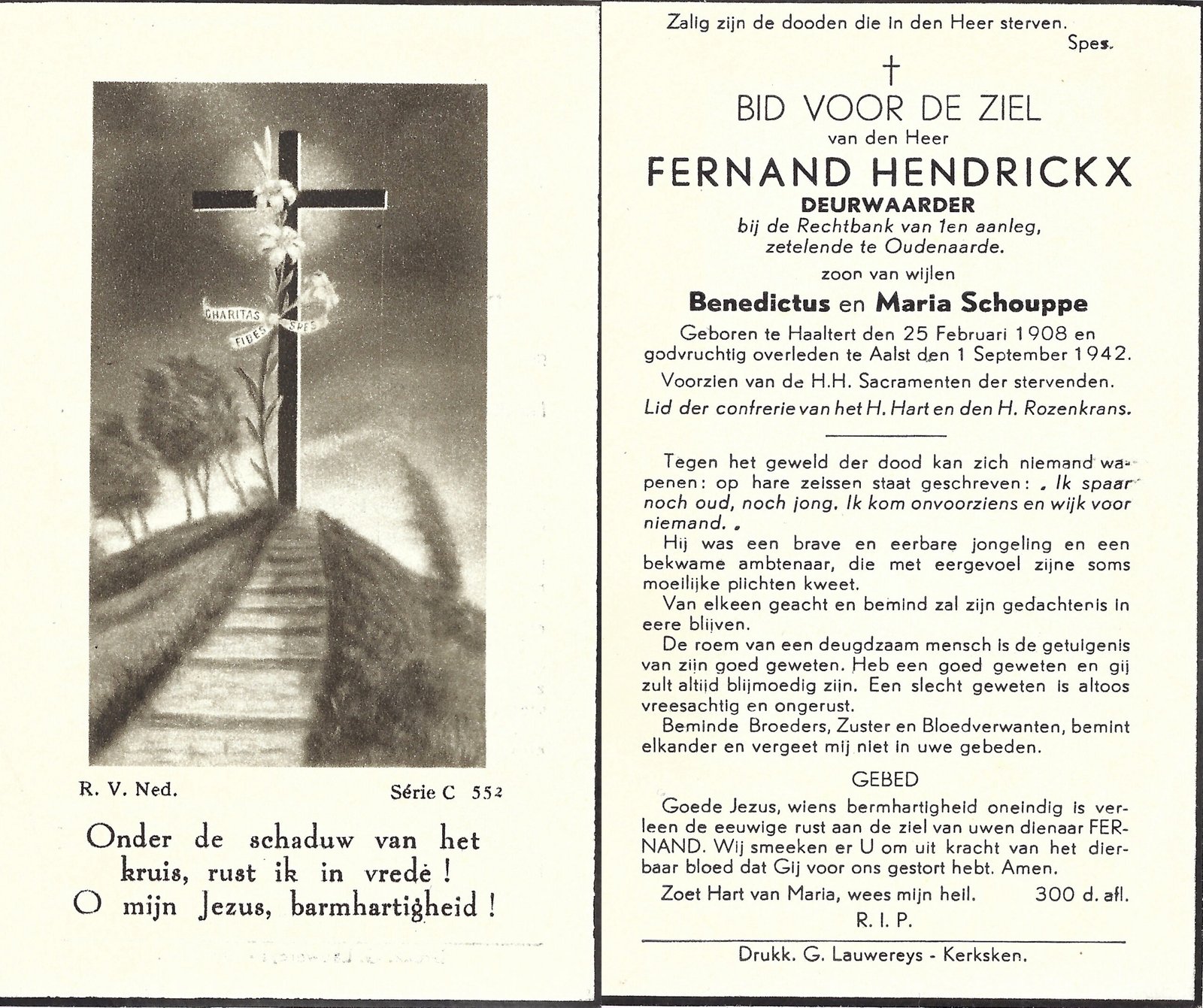 | Brijs Maria | Van Oudenhove Edgard | Denderhoutem | 24/04/1895 | Aalst | 23/10/1963 |