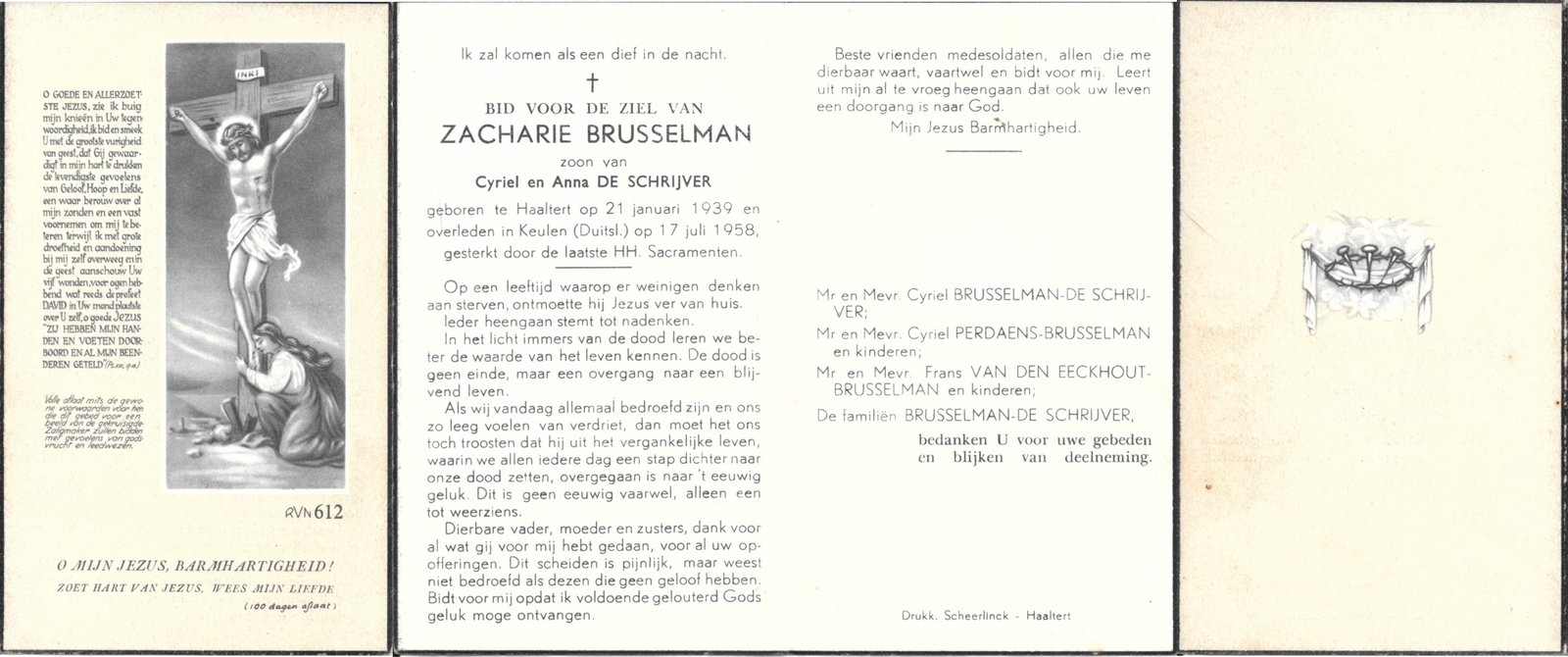 | Brusselman Zacharie | Haaltert | 21/01/1939 | Keulen (D) | 17/07/1958 | |