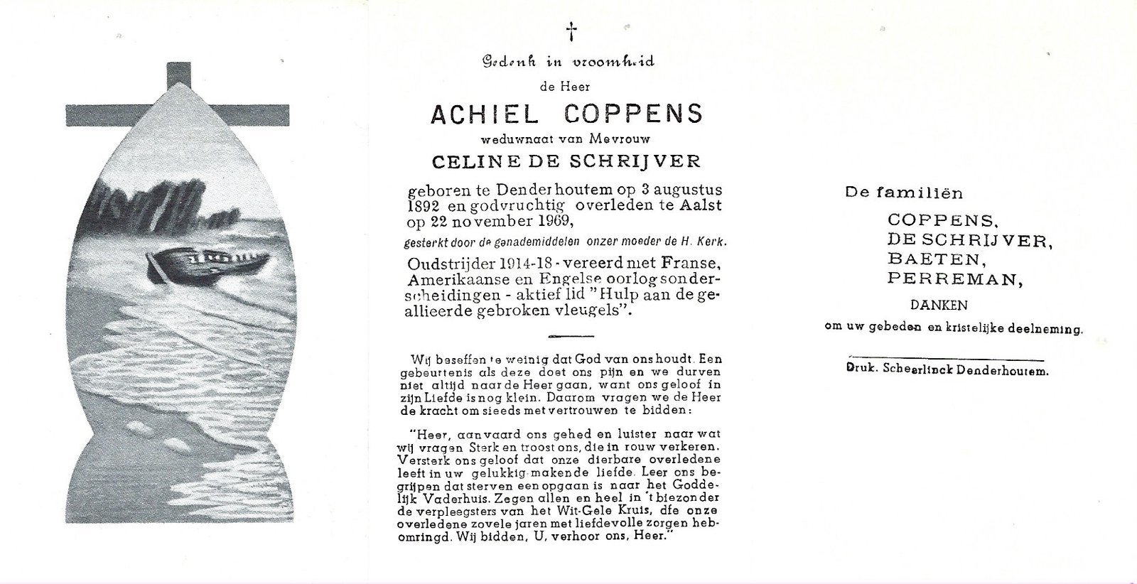 | Coppens Achiel | De Schrijver Celine | Denderhoutem | 03/08/1892 | Aalst | 22/11/1969 |