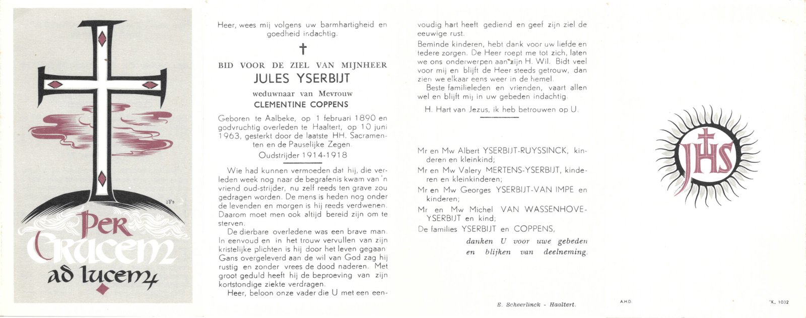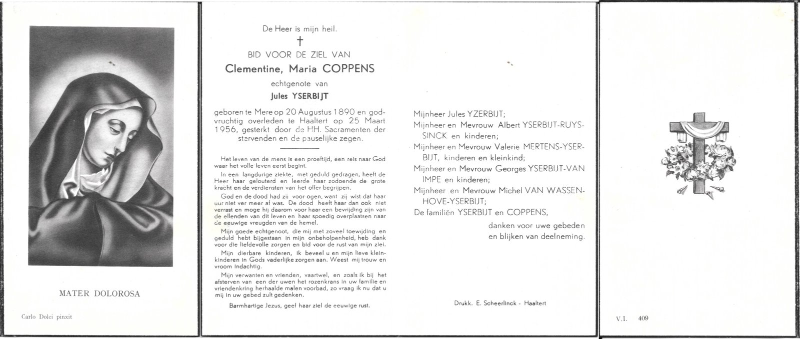 | Coppens Clementine | Yserbijt Jules | Mere | 20/08/1890 | Haaltert | 25/03/1956 |