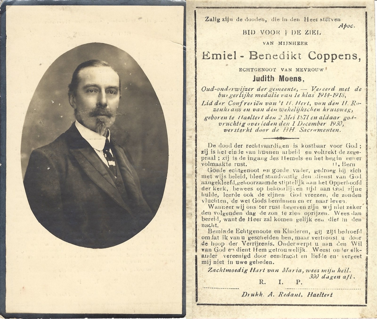 | Coppens Emiel – Benedikt | Moens Judith | Haaltert | 02/05/1871 | Haaltert | 01/12/1930 |