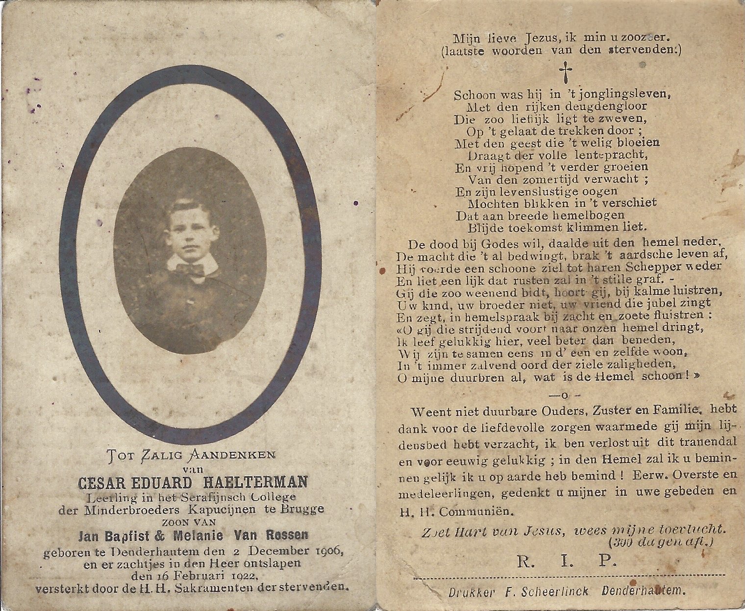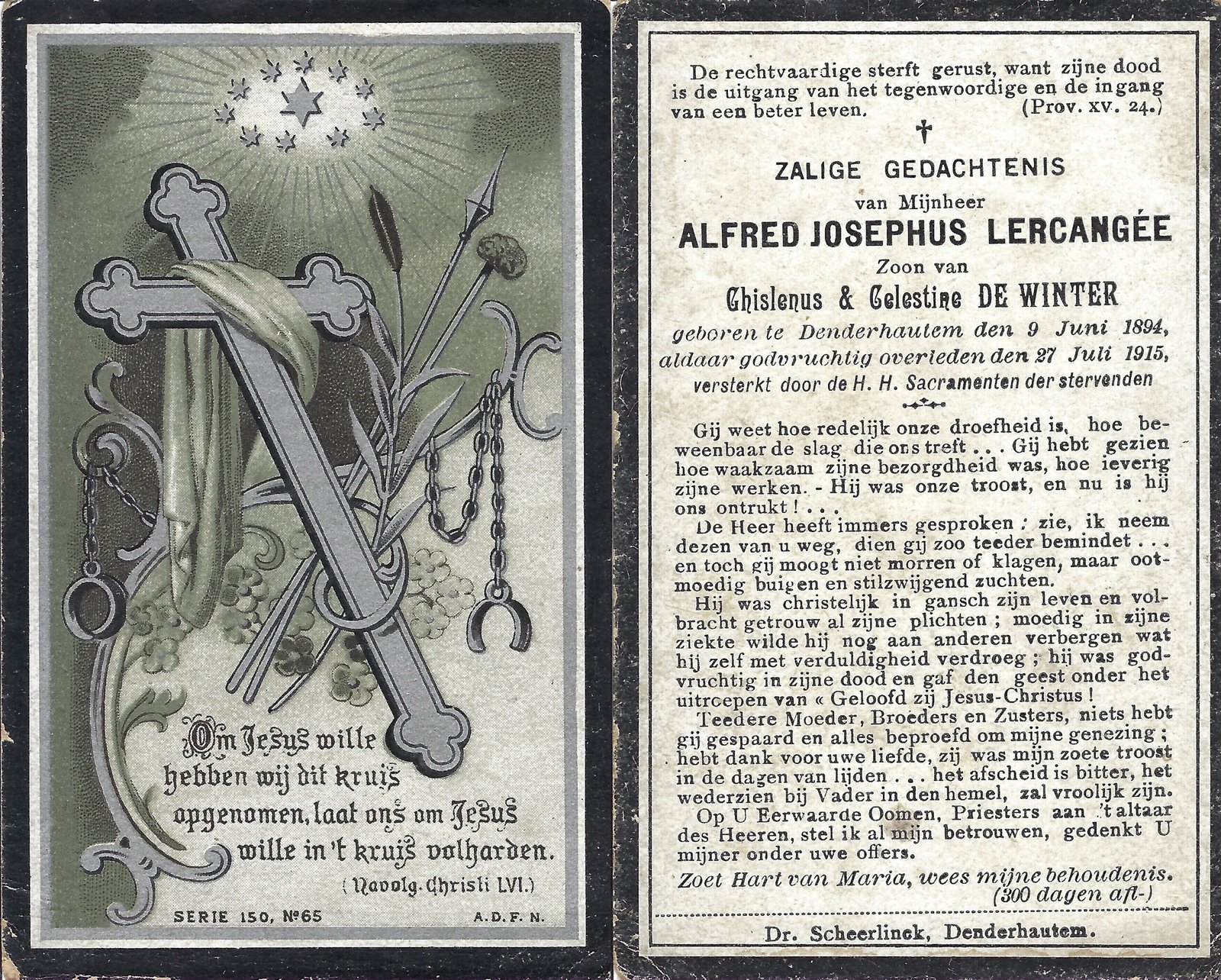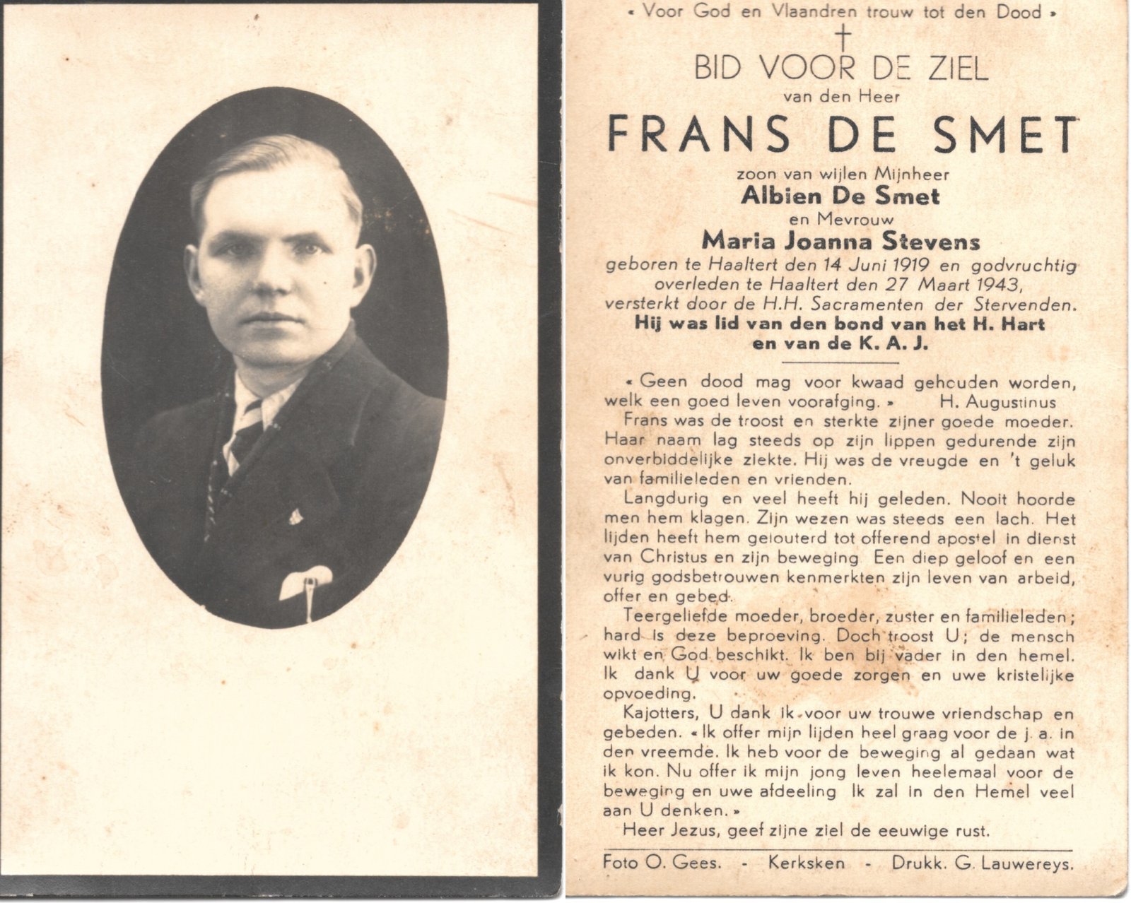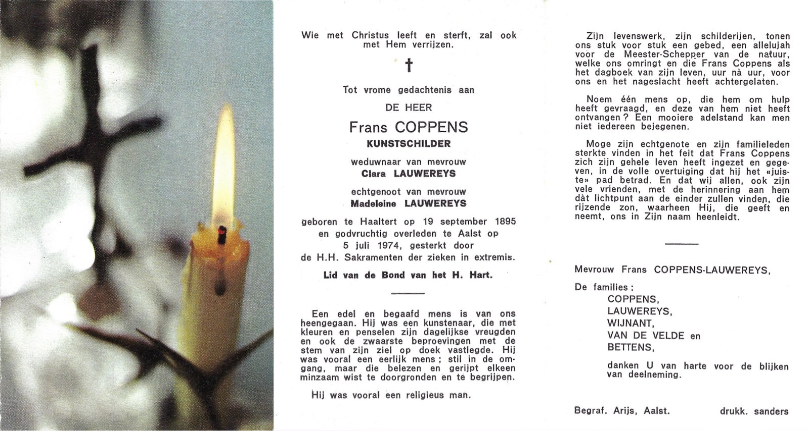 | Coppens Frans | Lauwereys Clara en Lauwereys Madeleine | Haaltert | 19/09/1895 | Aalst | 05/07/1974 |