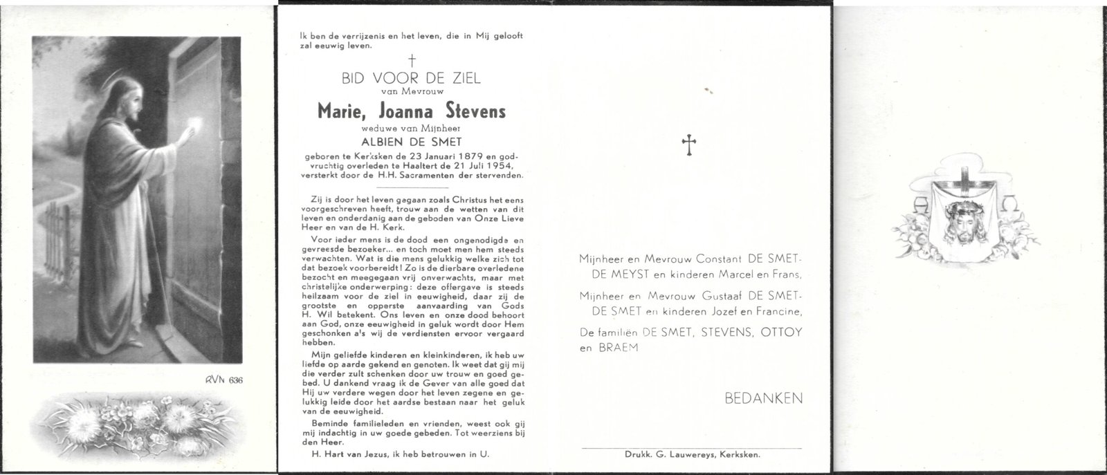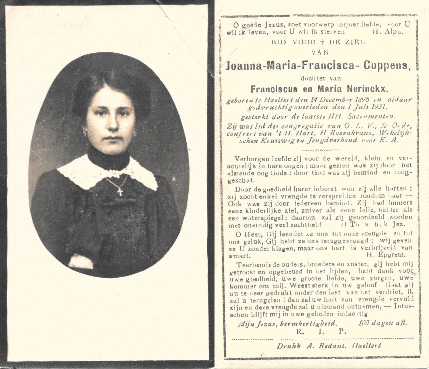 | Coppens Joanna-Maria | Haaltert | 14/12/1896 | Haaltert | 01/07/1931 | |