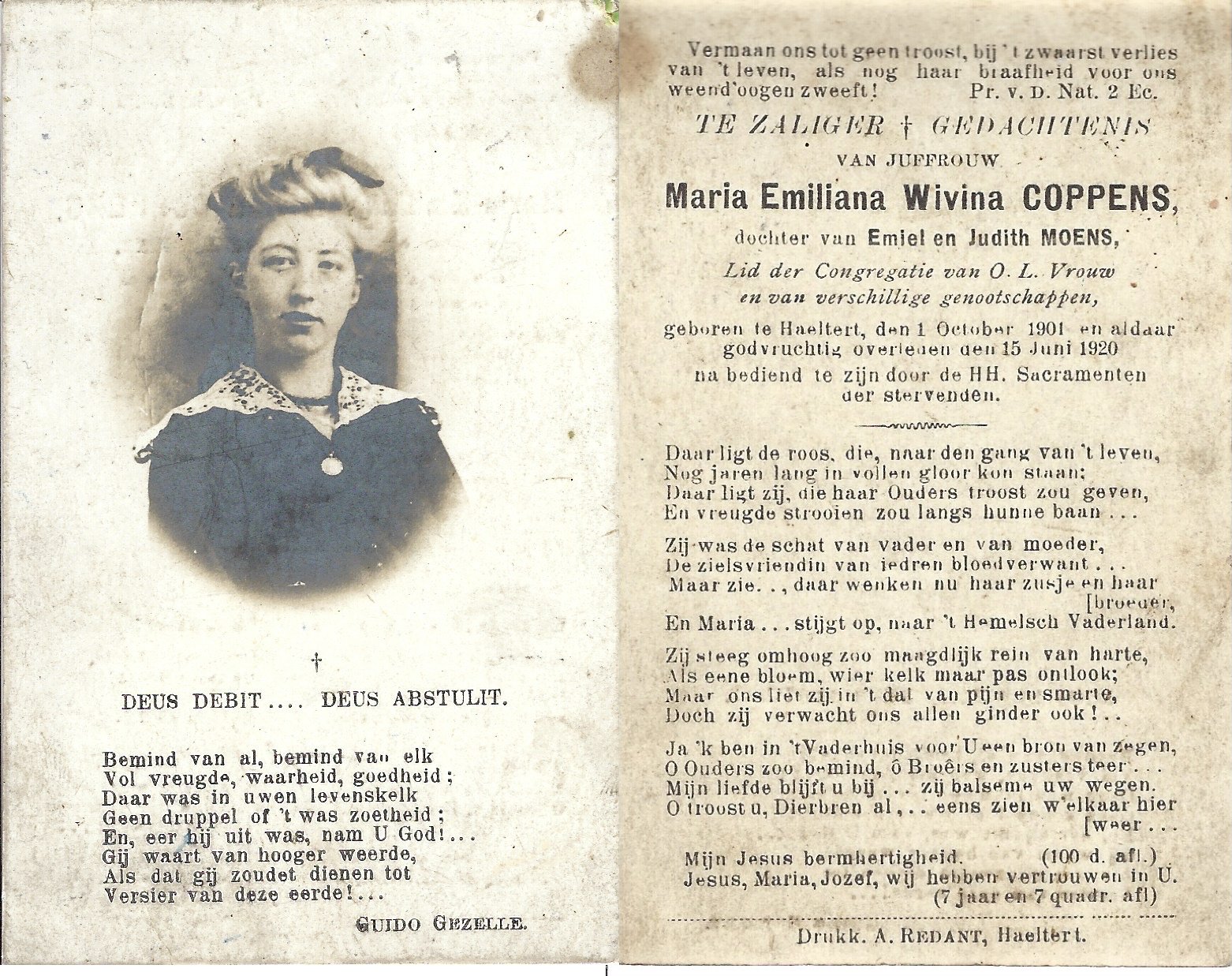 | Coppens Maria Emiliana | Haaltert | 01/10/1901 | Haaltert | 15/06/1920 | |