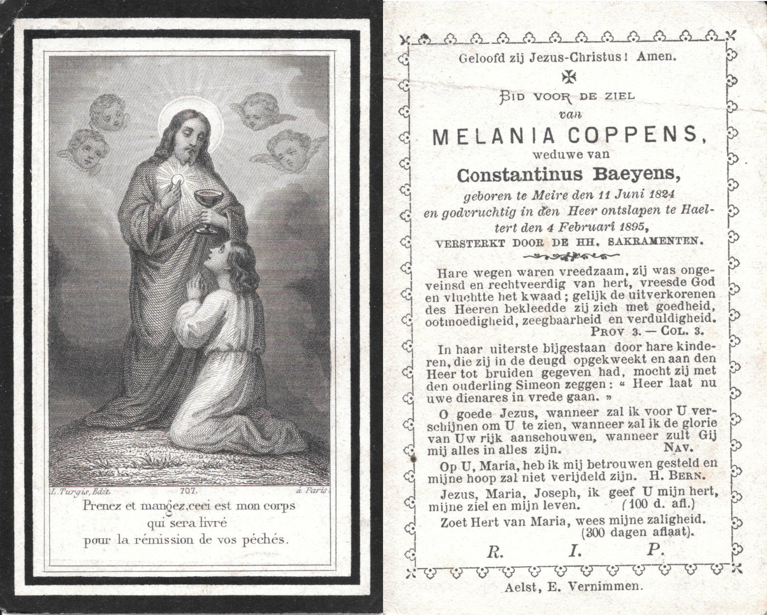 | Coppens Melania | Baeyens Constantinus | Mere | 11/06/1824 | Haaltert | 04/02/1895 |