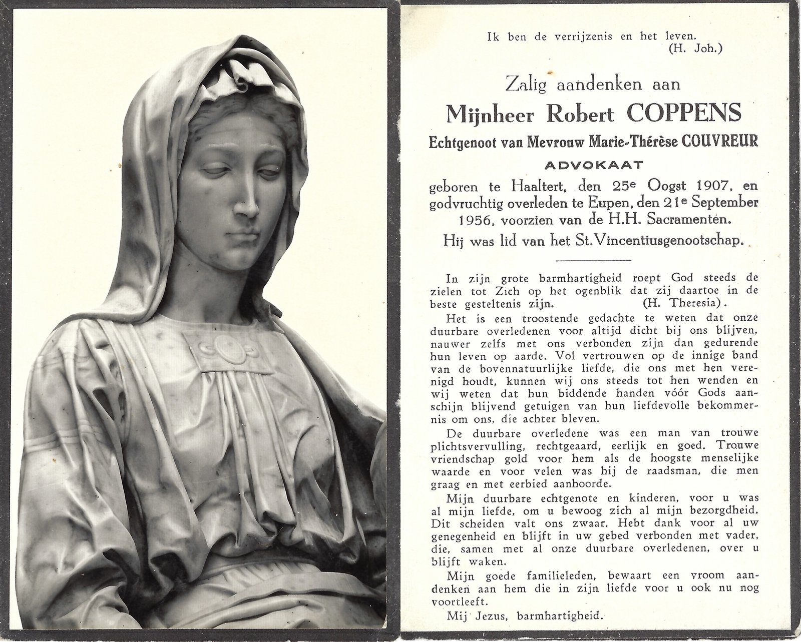 | Coppens Robert | Couvreur Marie-Thérèse | Haaltert | 25/08/1907 | Eupen | 21/09/1956 |