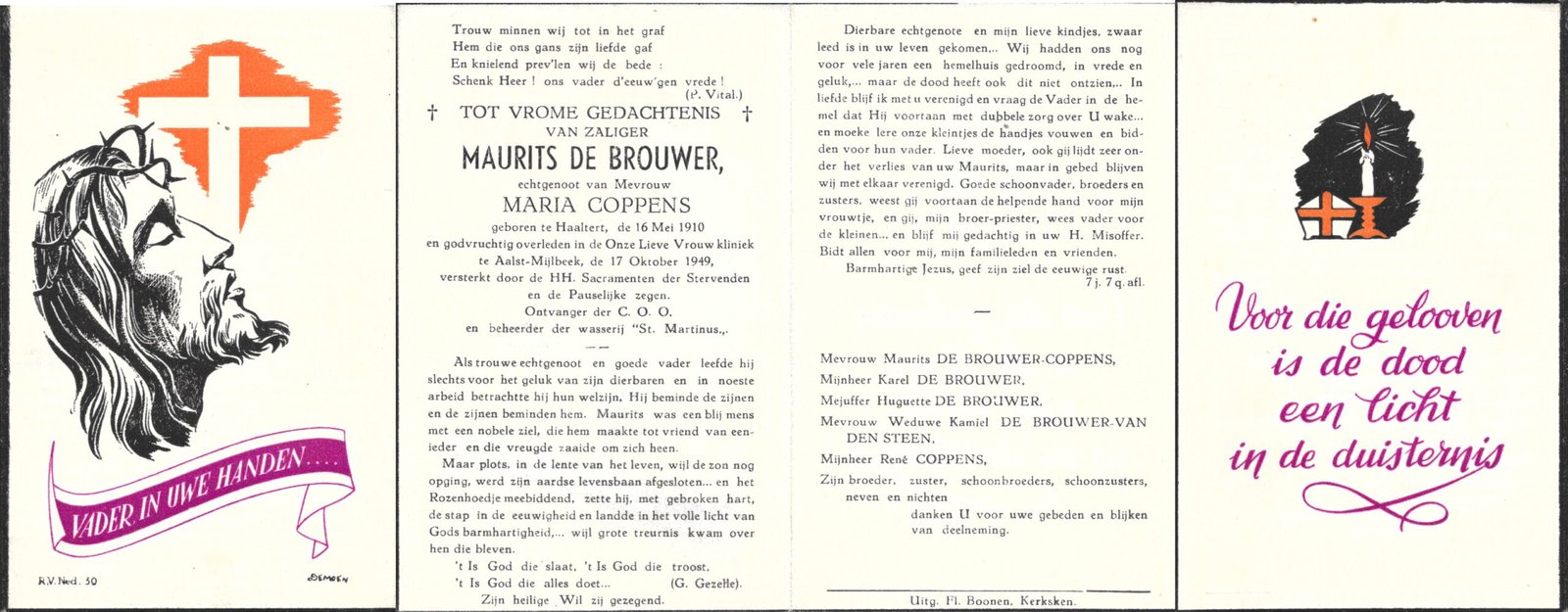 | De Brouwer Maurits | Coppens Maria | Haaltert | 16/05/1910 | Aalst | 17/10/1949 |