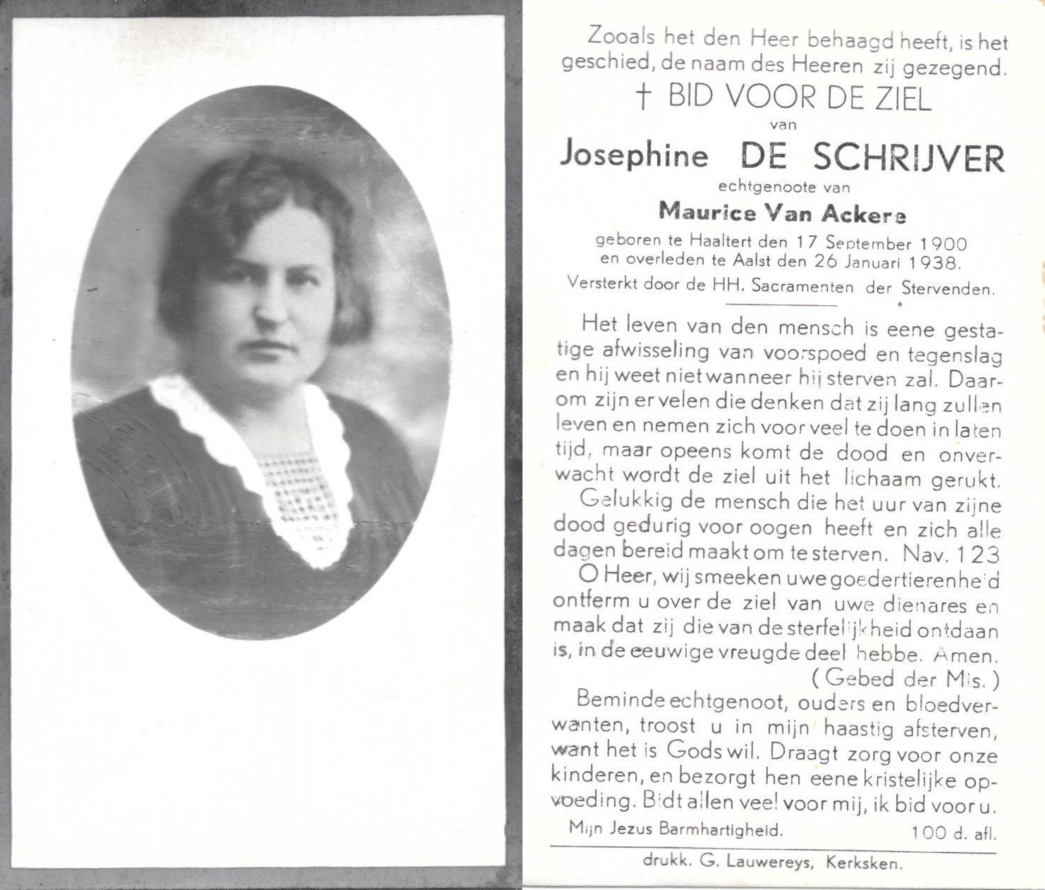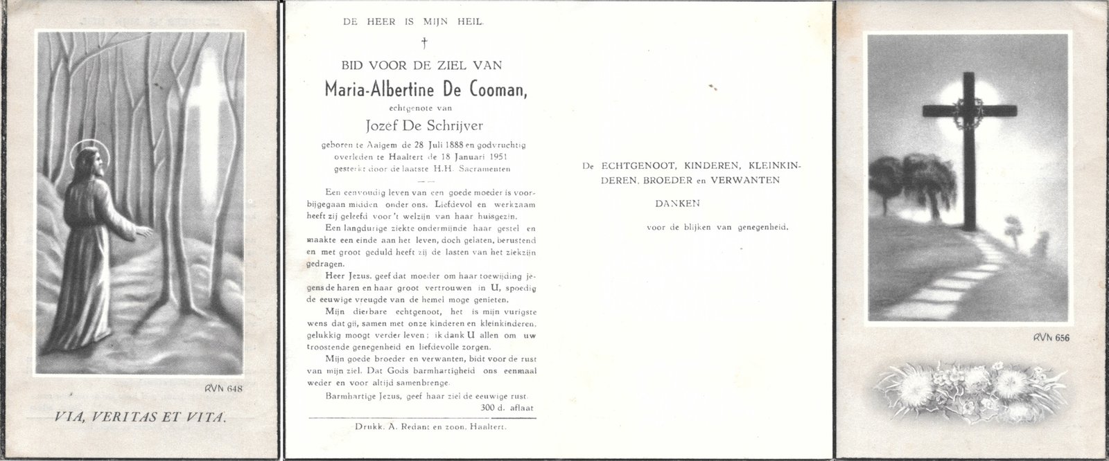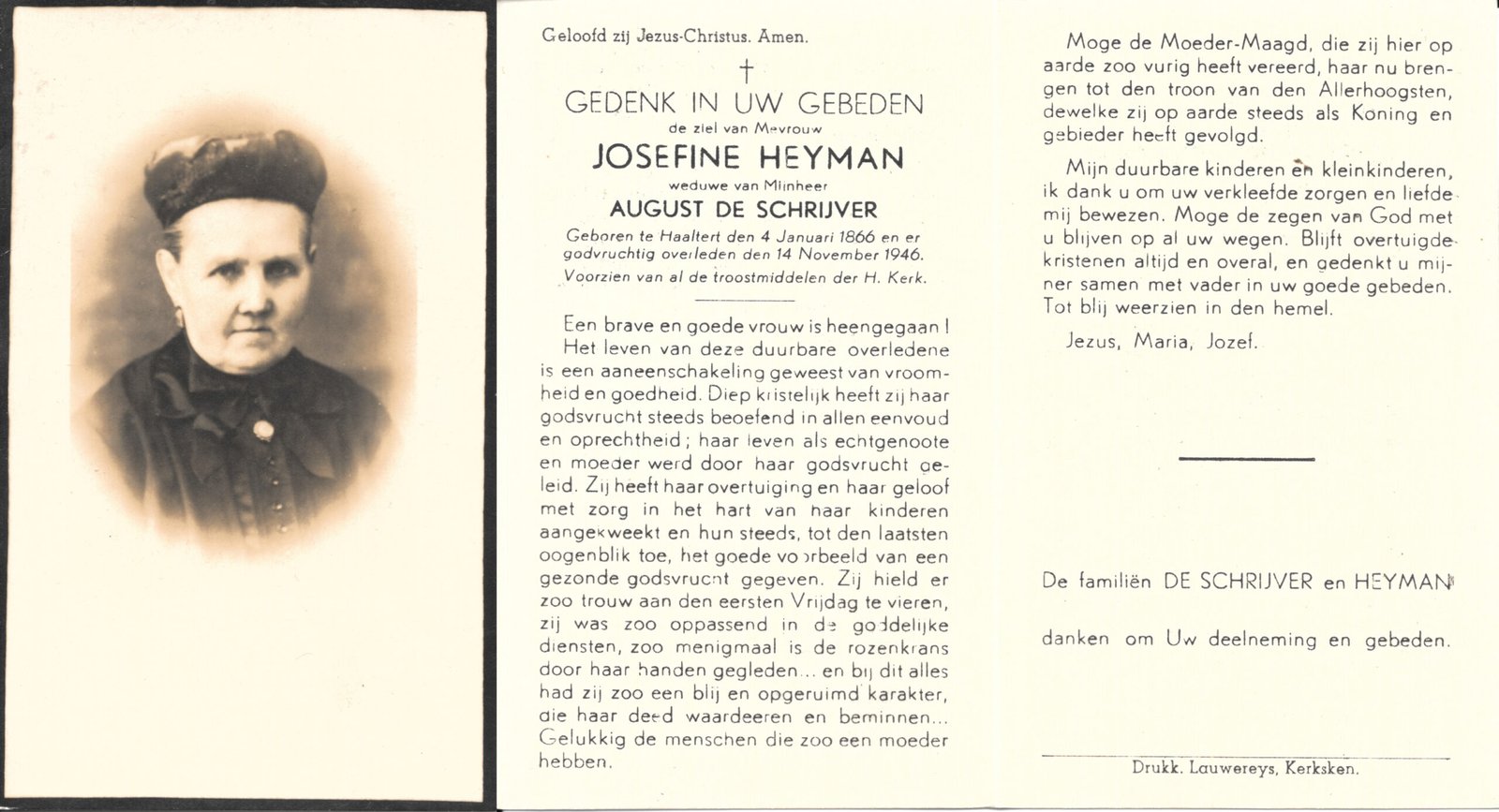 | De Cooman Maria-Albertine | De Schrijver Jozef | Aaigem | 28/07/1888 | Haaltert | 18/01/1951 |
