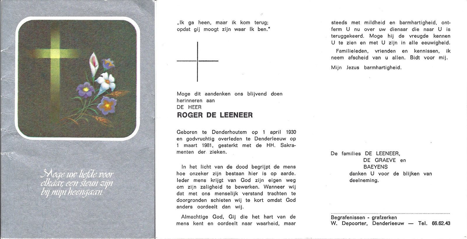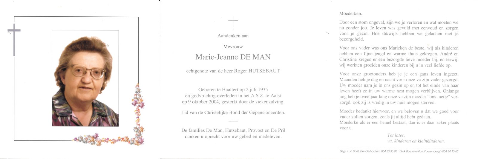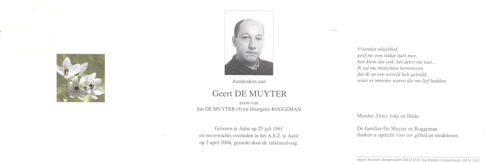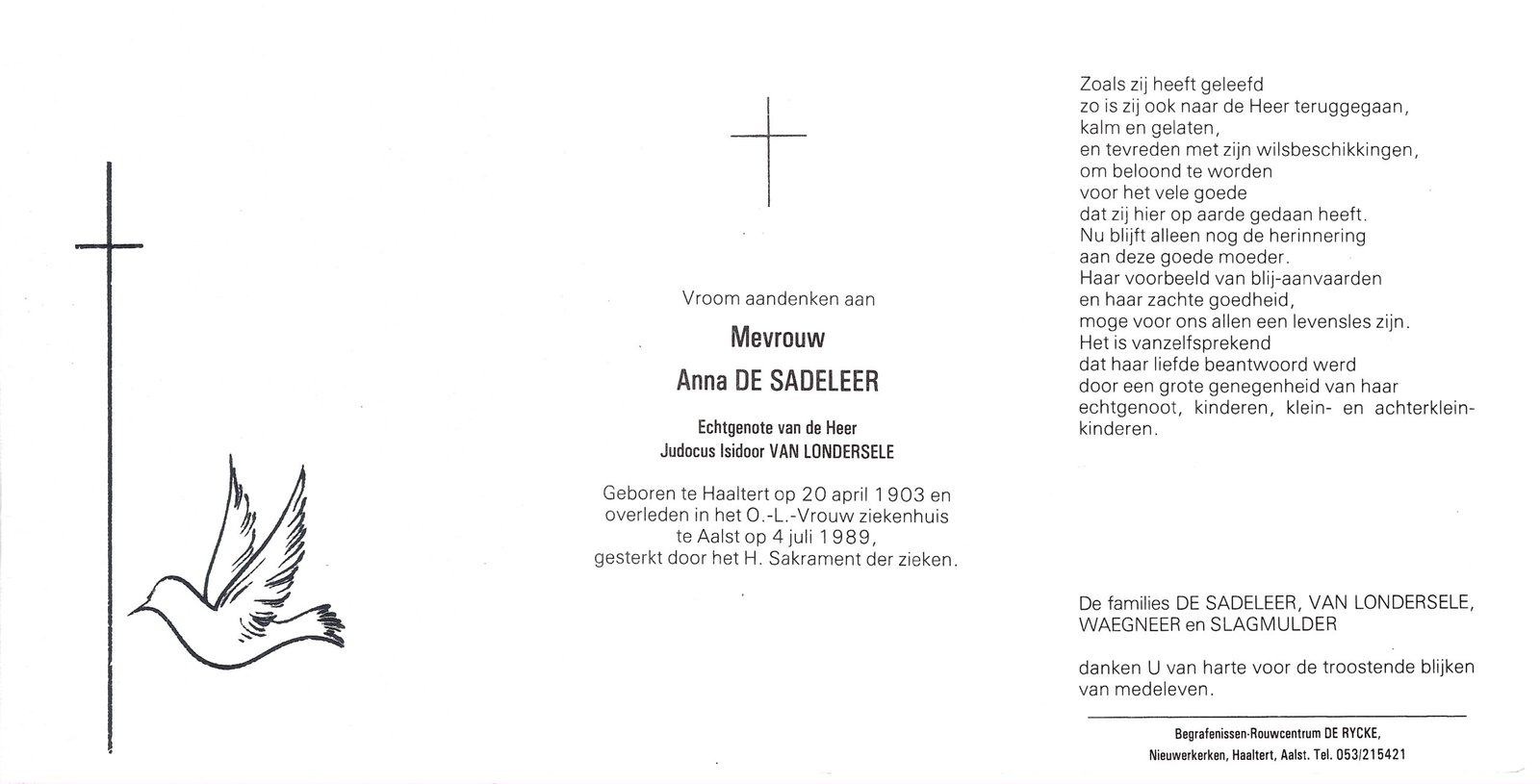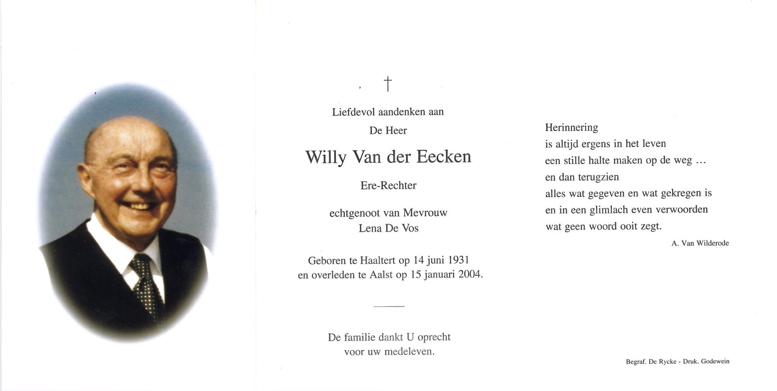 | Van der Eecken Willy | De Vos Lena | Haaltert | 14/06/1931 | Aalst | 15/01/2004 |