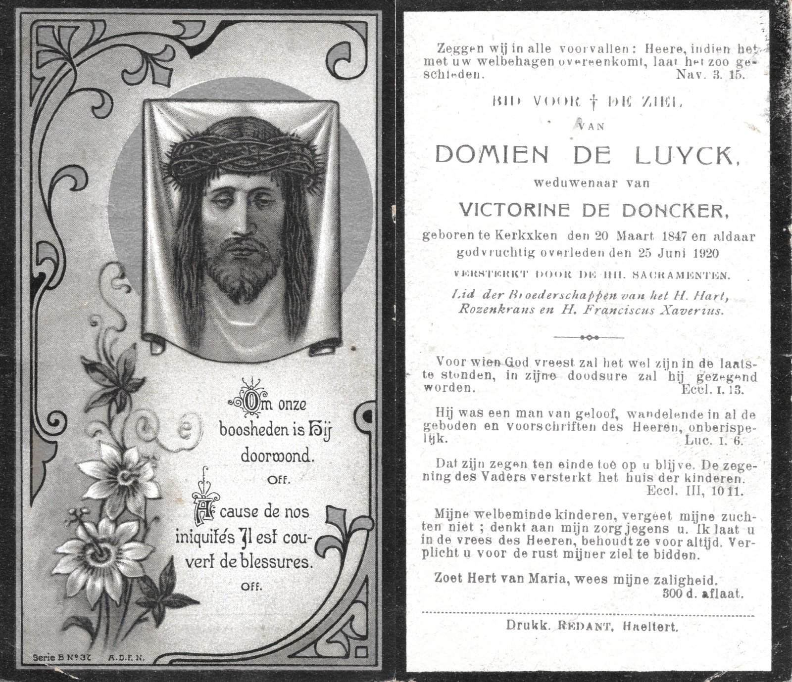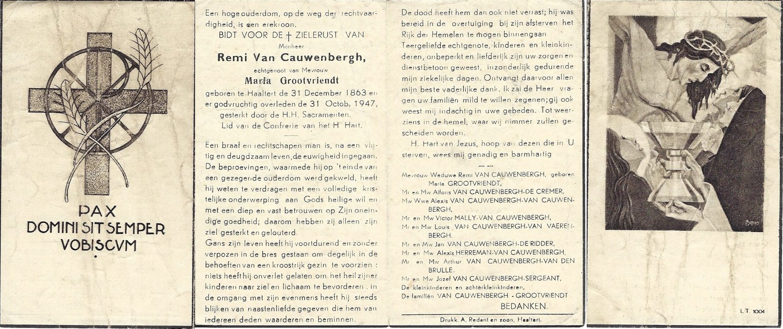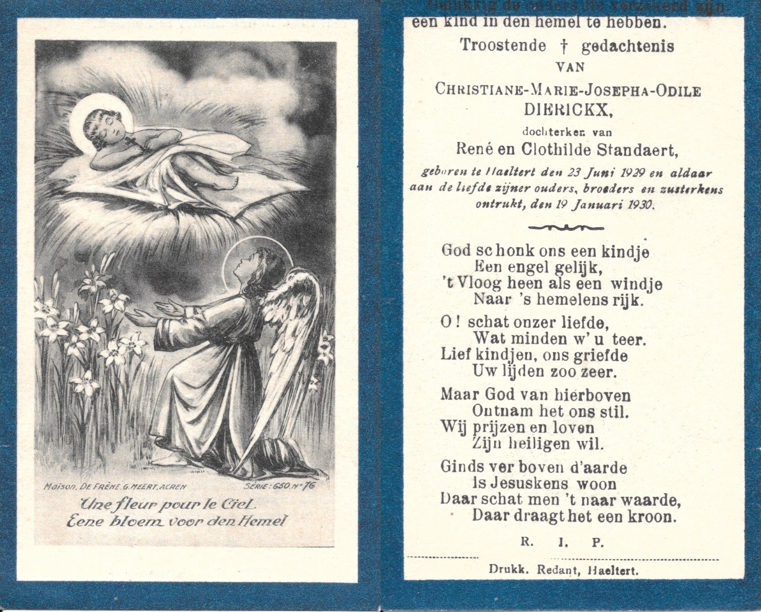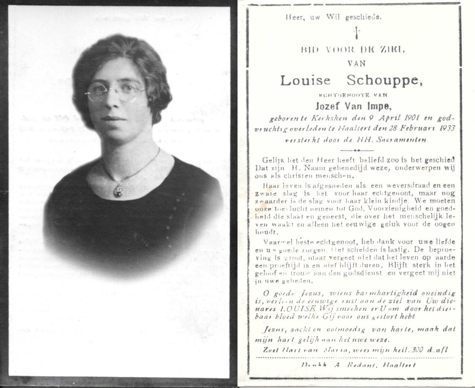 | Van Durme Maria Leopoldina | Redant Victor | Haaltert | 22/11/1881 | Haaltert | 17/01/1967 |