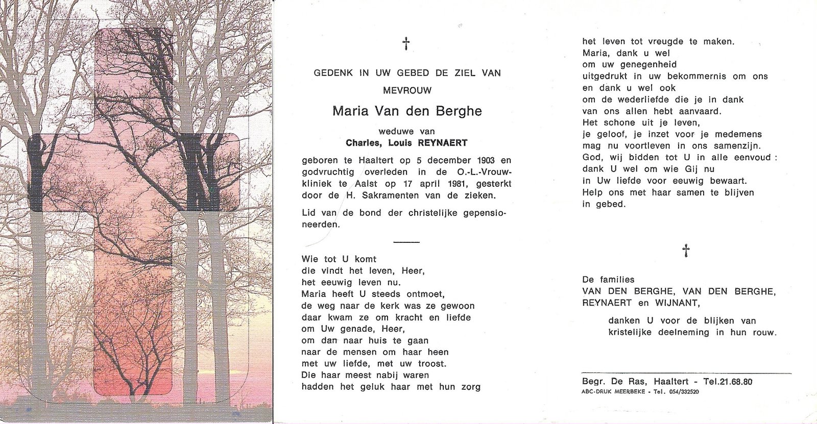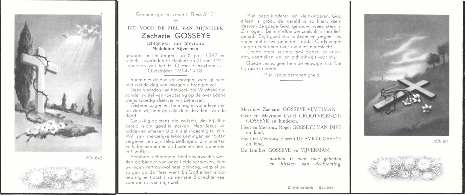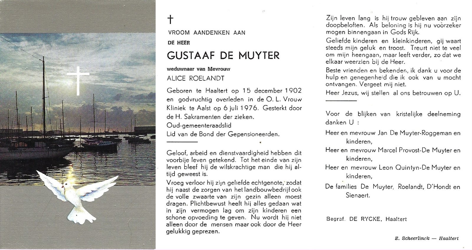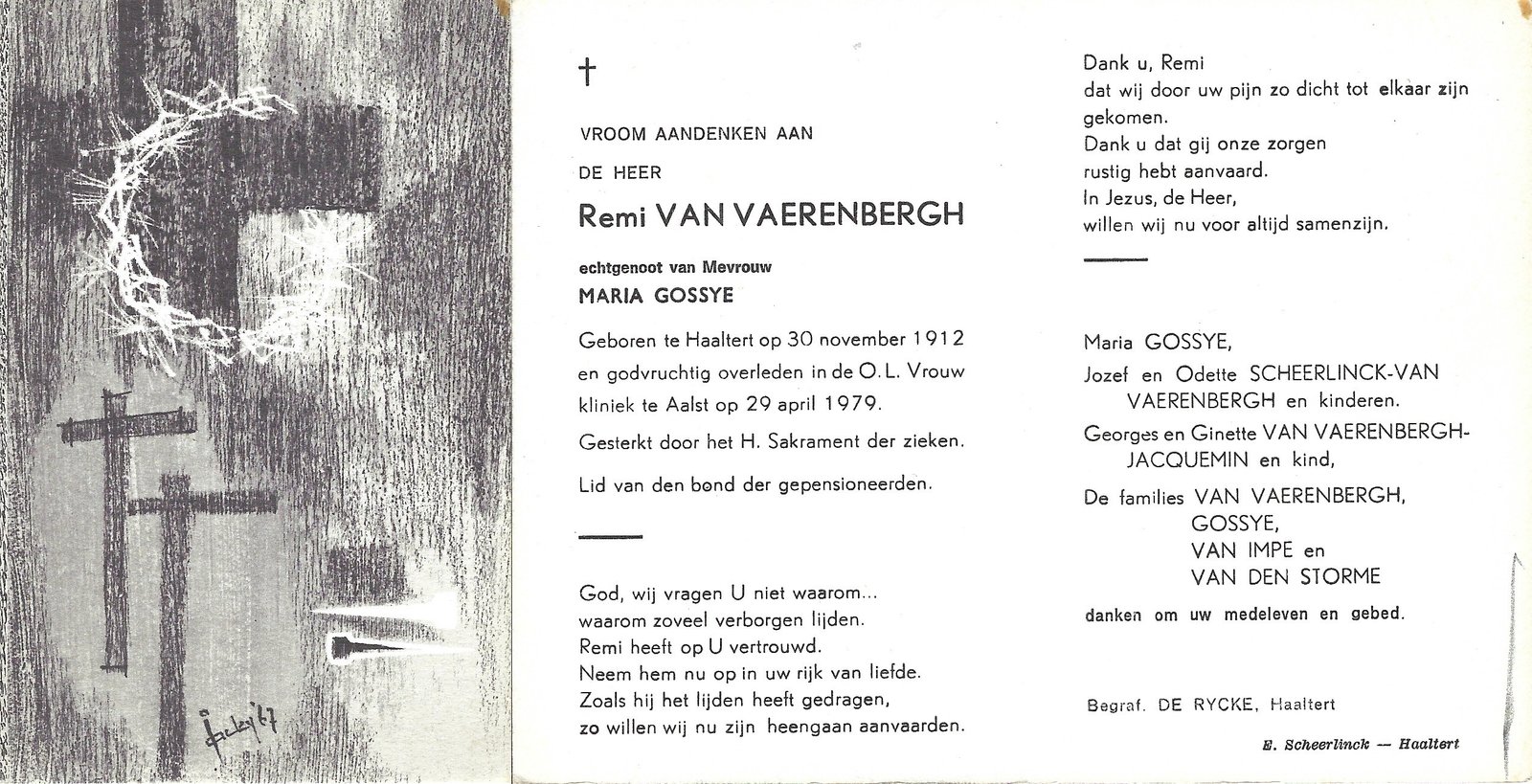 | Van Vaerenbergh Remi | Gossye Maria | Haaltert | 30/11/1912 | Aalst | 29/04/1979 |