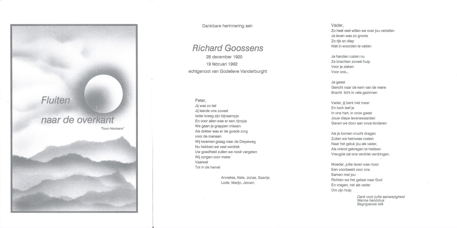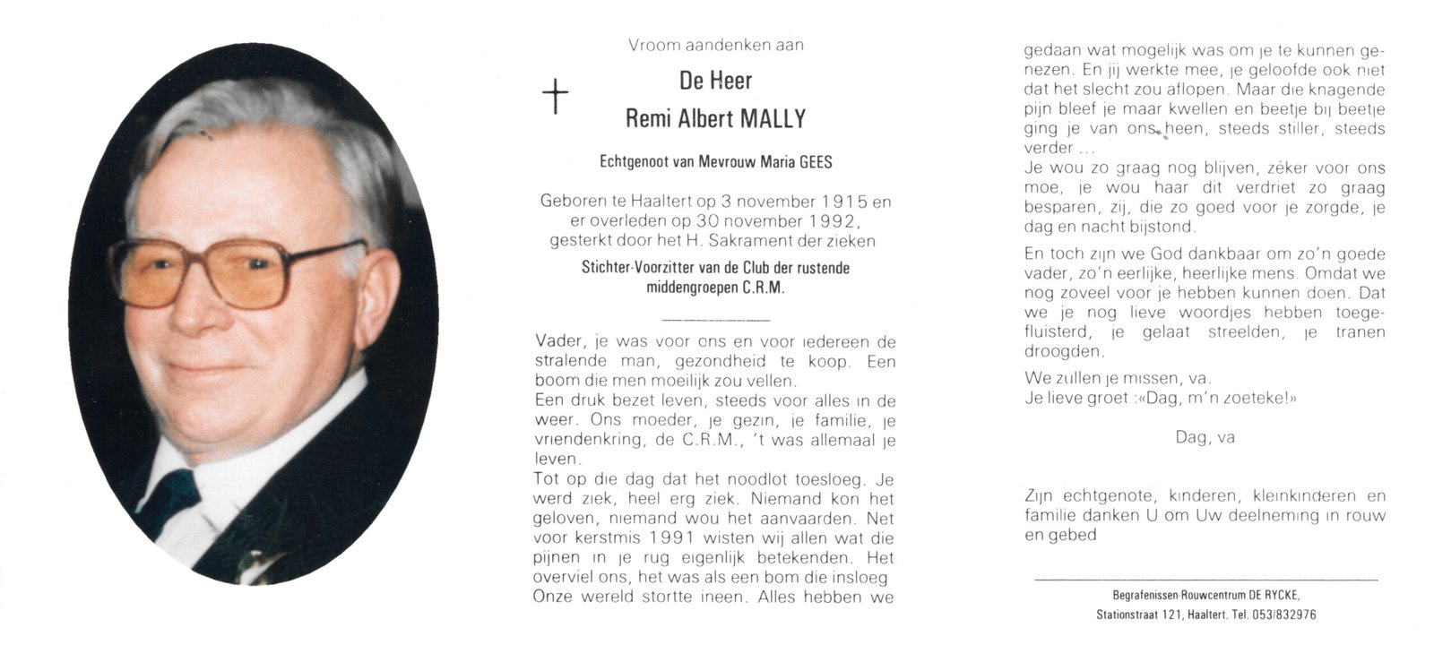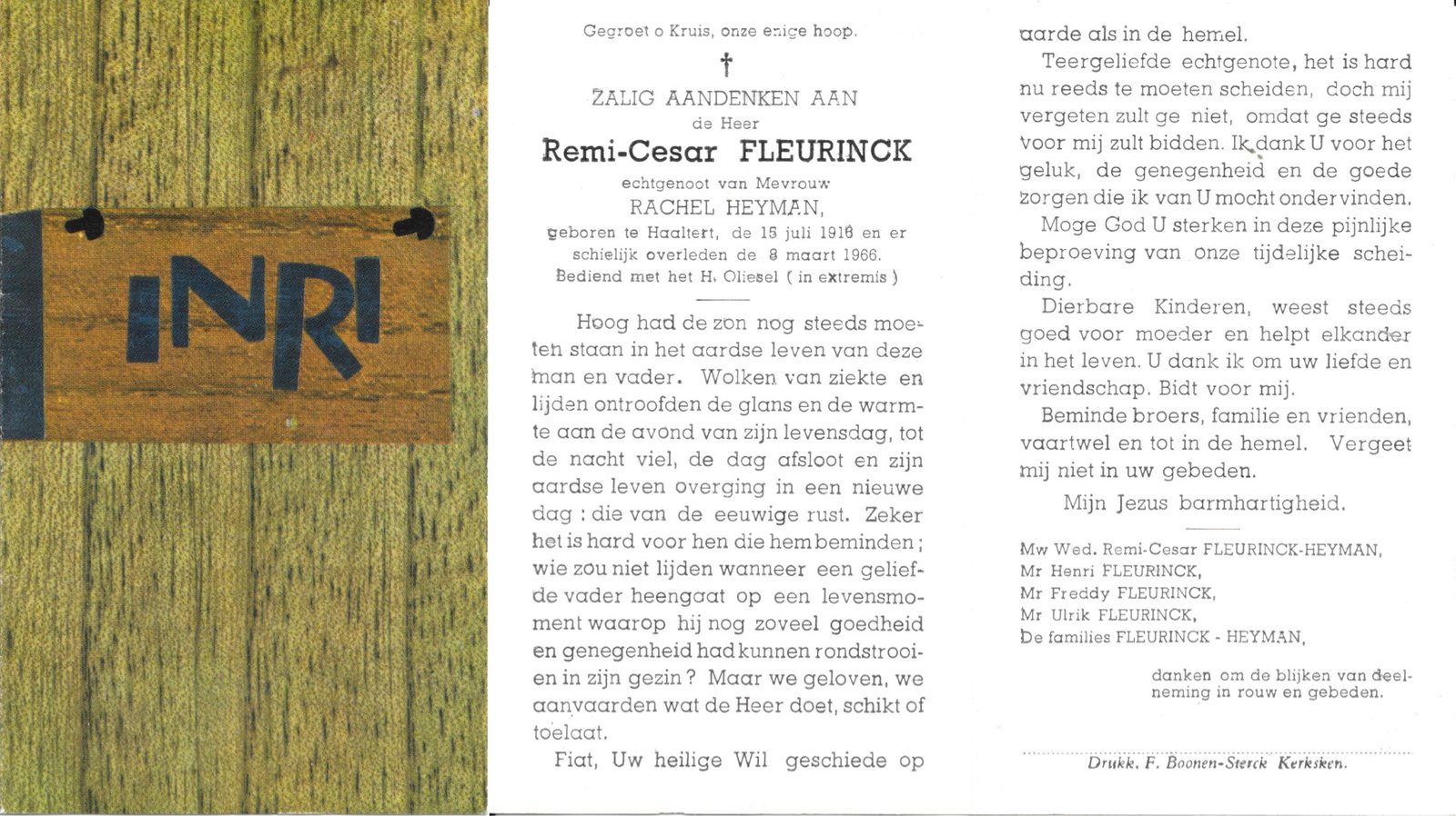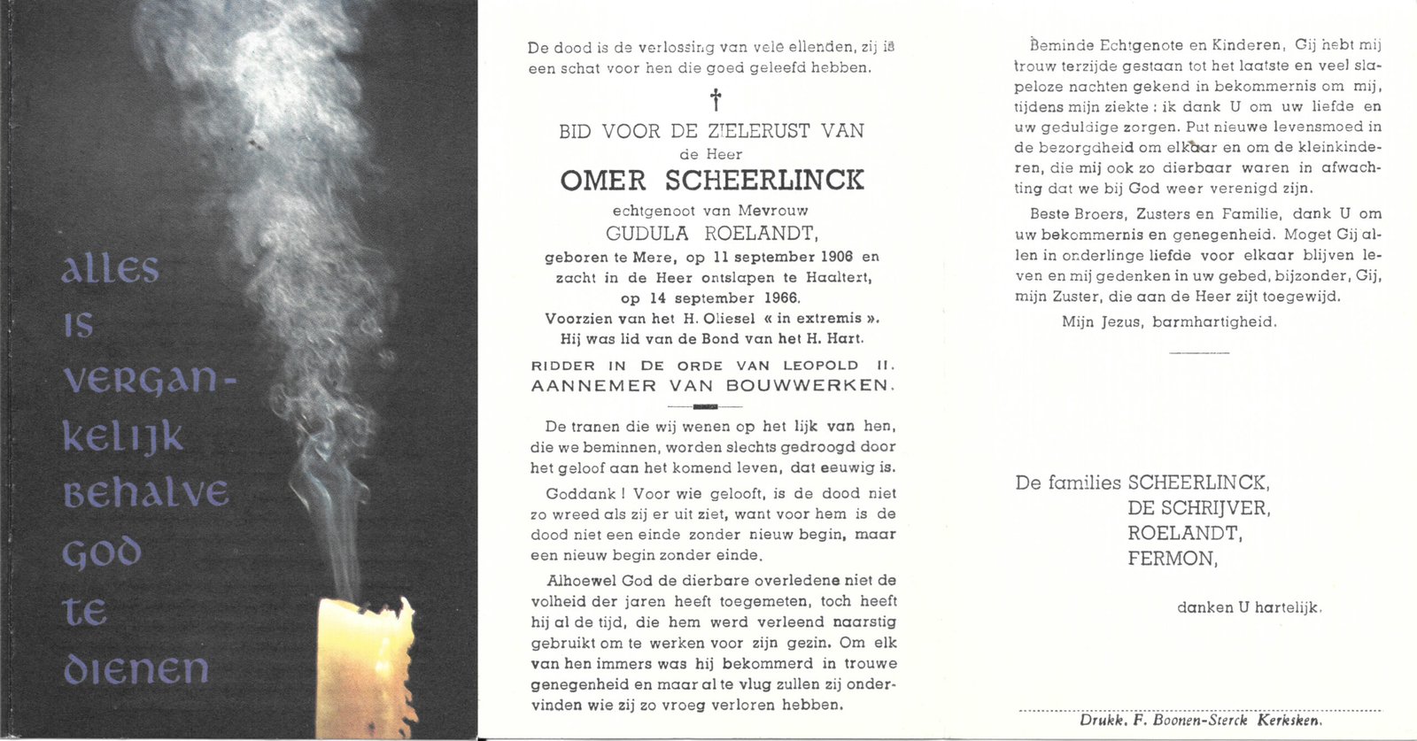 | Van Vaerenbergh Remi | Gossye Maria | Haaltert | 30/11/1912 | Aalst | 29/04/1979 |